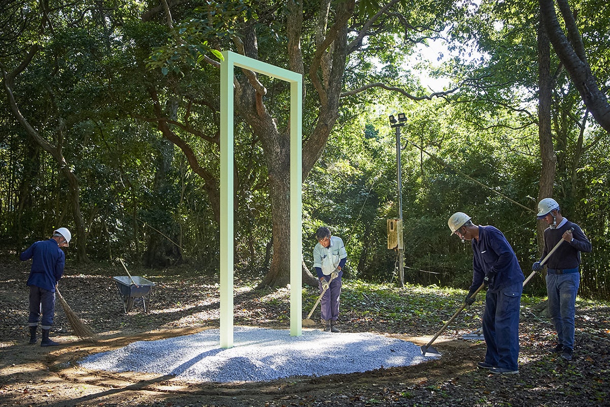 たとえば、世界遺産のため境内のなかは穴を掘ることができません。大型作品や彫刻作品の設置のときには風雨に負けず、倒される危険がないように固定しなければなりませんが、穴が掘れないため構造の発想を変えたり、設置方法を考え直したりといった課題に直面する場合があります。