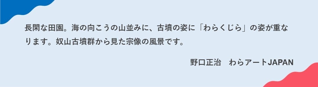 様々な歴史や文化を紡いできた宗像という場所で行われる特別な芸術祭を多くの方々に体感していただきたいと思っています。