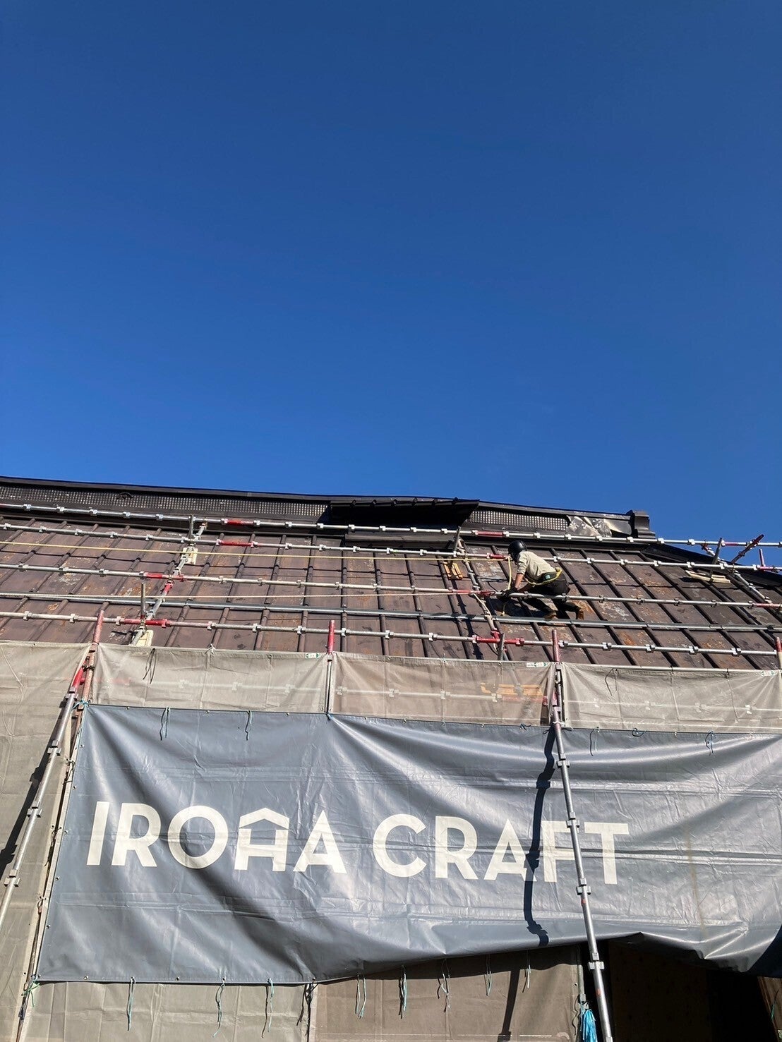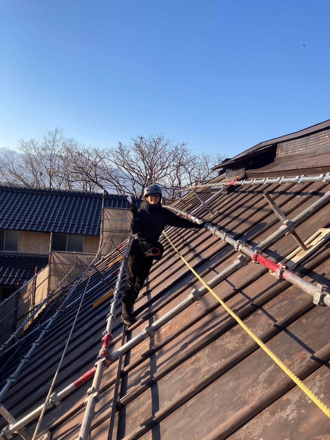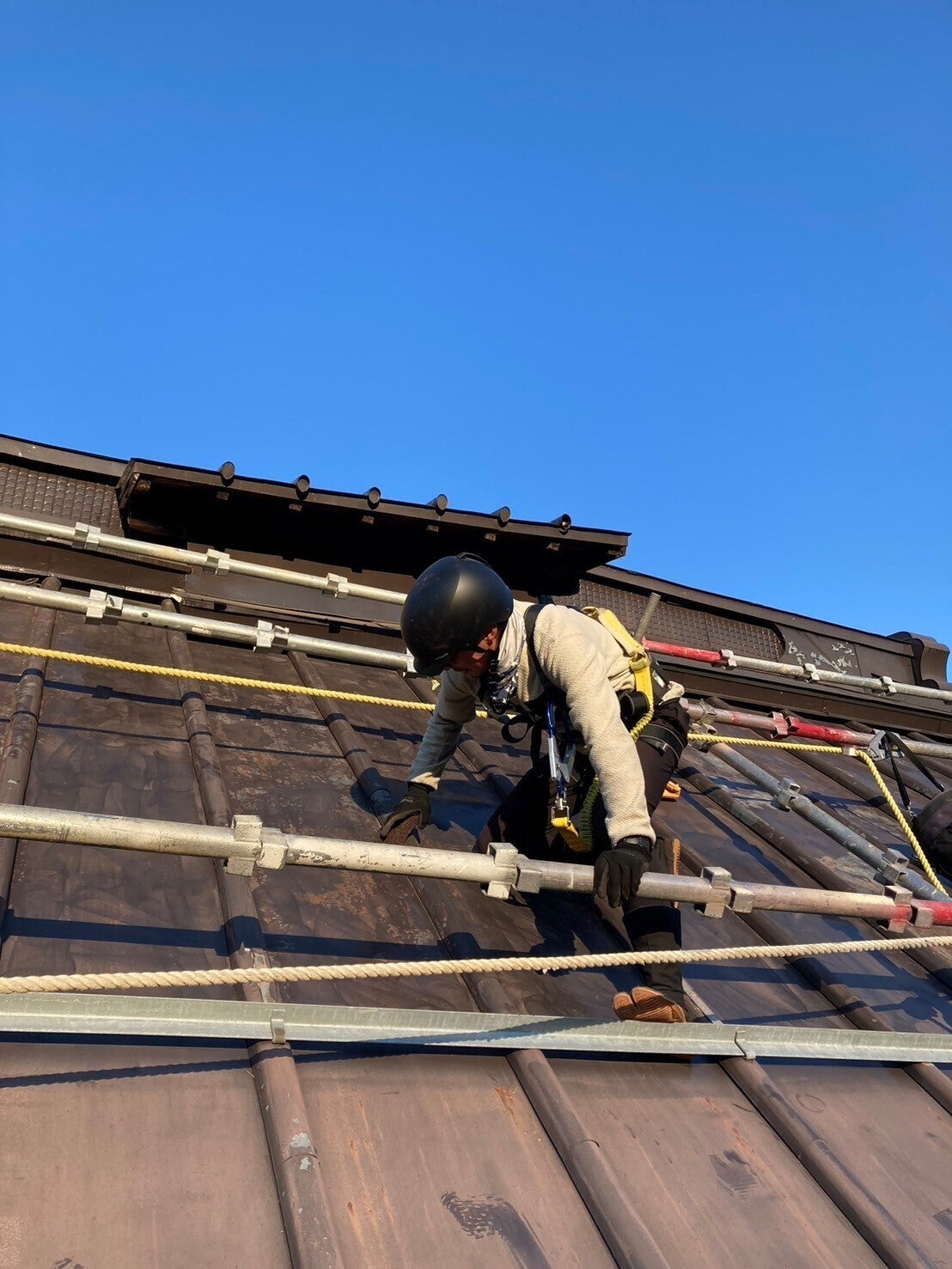 足場や命綱はあるものの、想像以上の高さと傾斜で冷や冷やしながらの作業となっています。すでに筋肉痛が・・・
