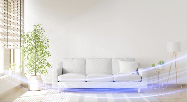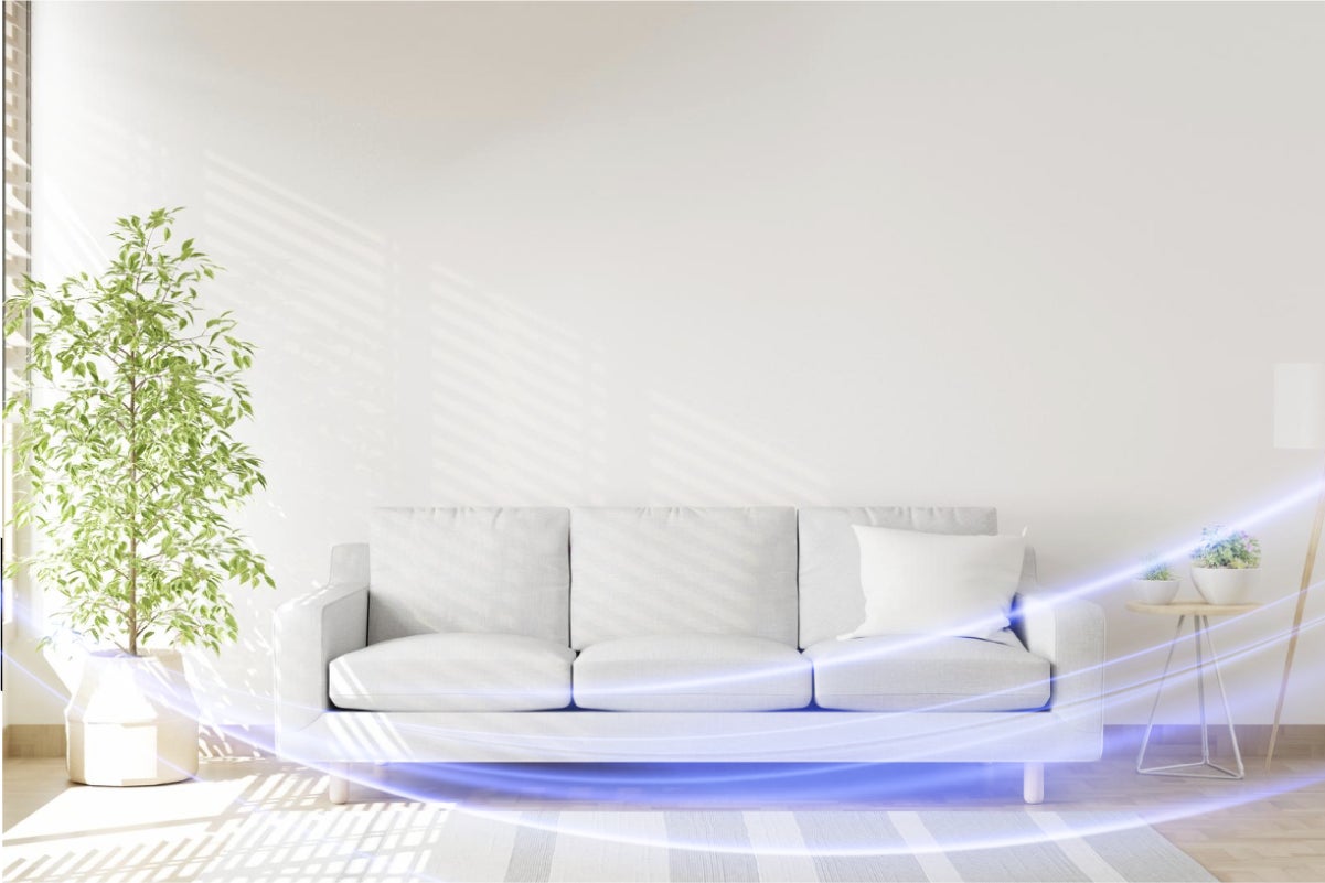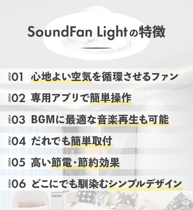 どの部屋にもなじむシンプルデザインのSoundFan Lightはどのような空間にもマッチします。