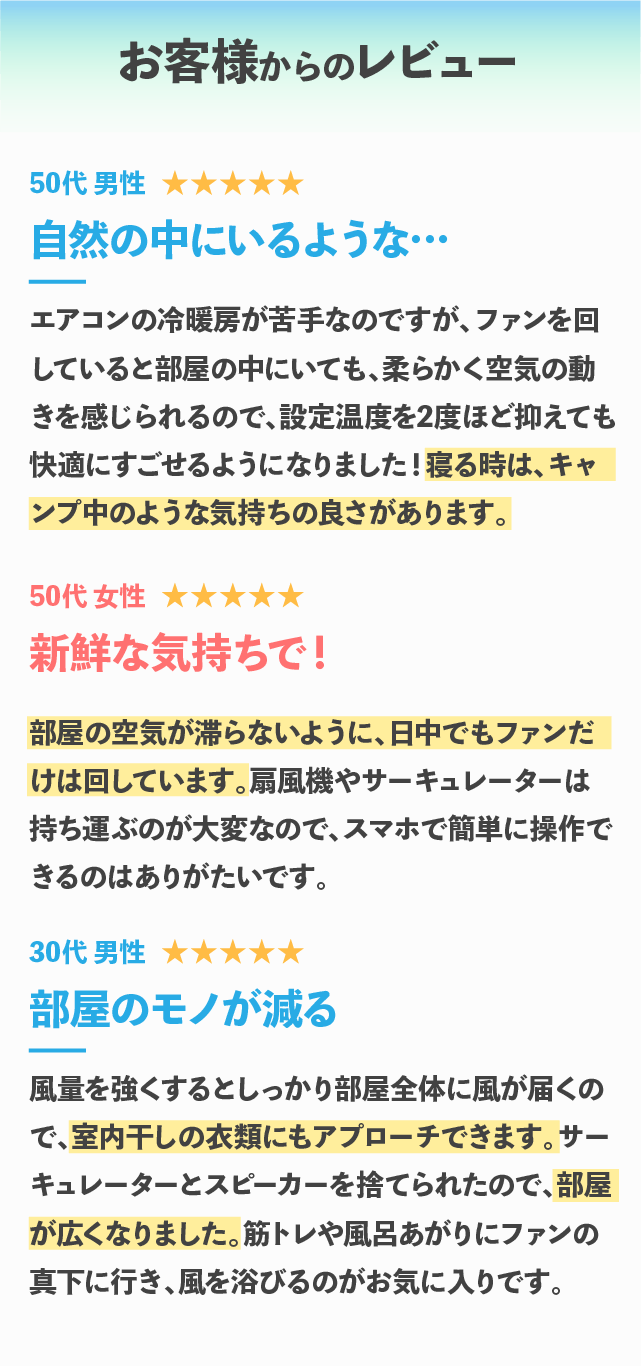 風量の調節が可能なので、しっかり空気を循環させたい時でも、心地よいそよ風のような空気の流れがほしい時でも、対応可能です。