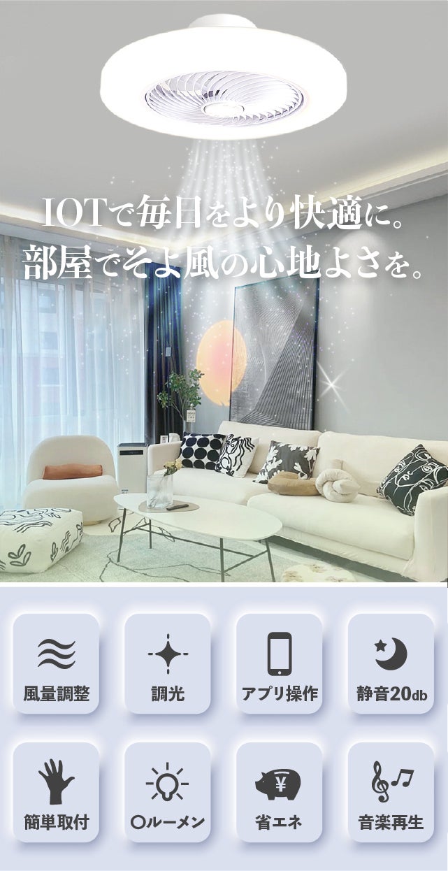 部屋の空気を循環させるファン付きシーリングライト。スマホのアプリで操作可能+Bluetooth接続で音楽再生まで!あなたの部屋にIOTを導入し、より快適な毎日を過ごしませんか?