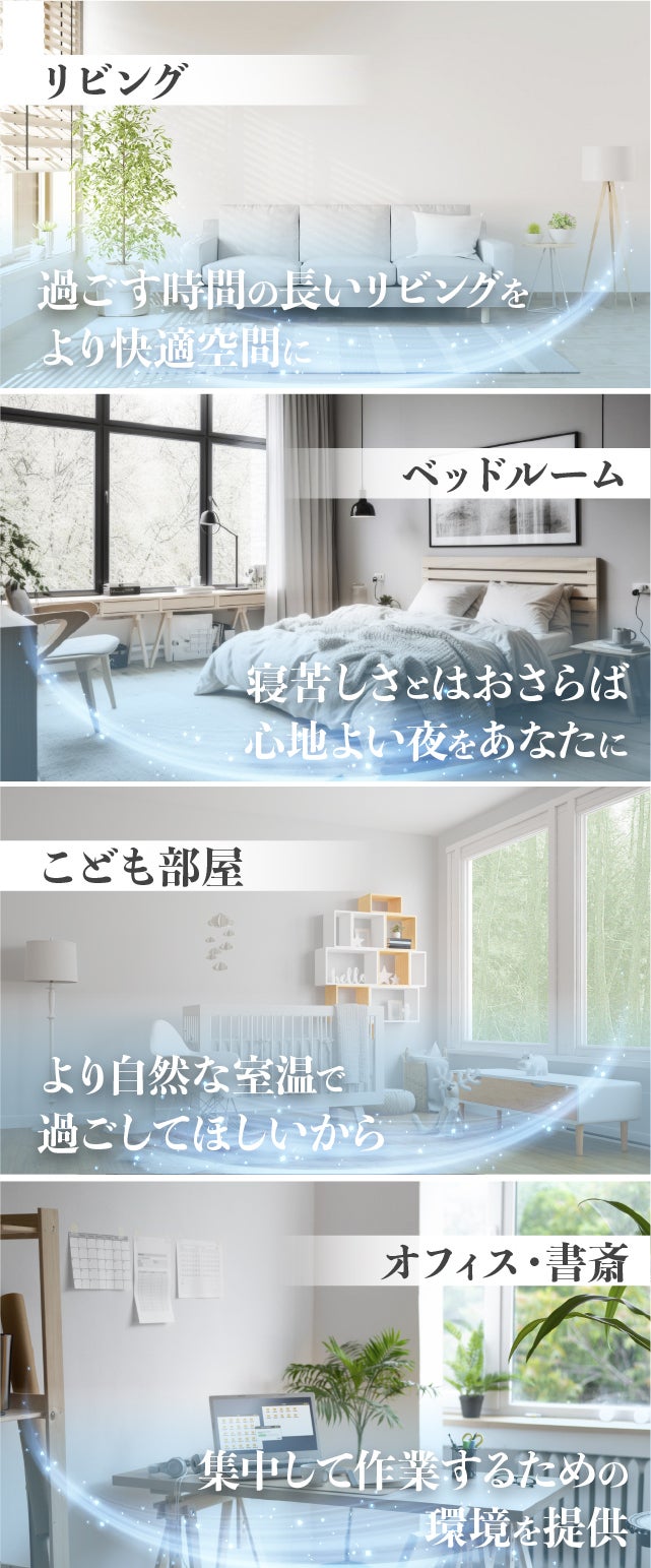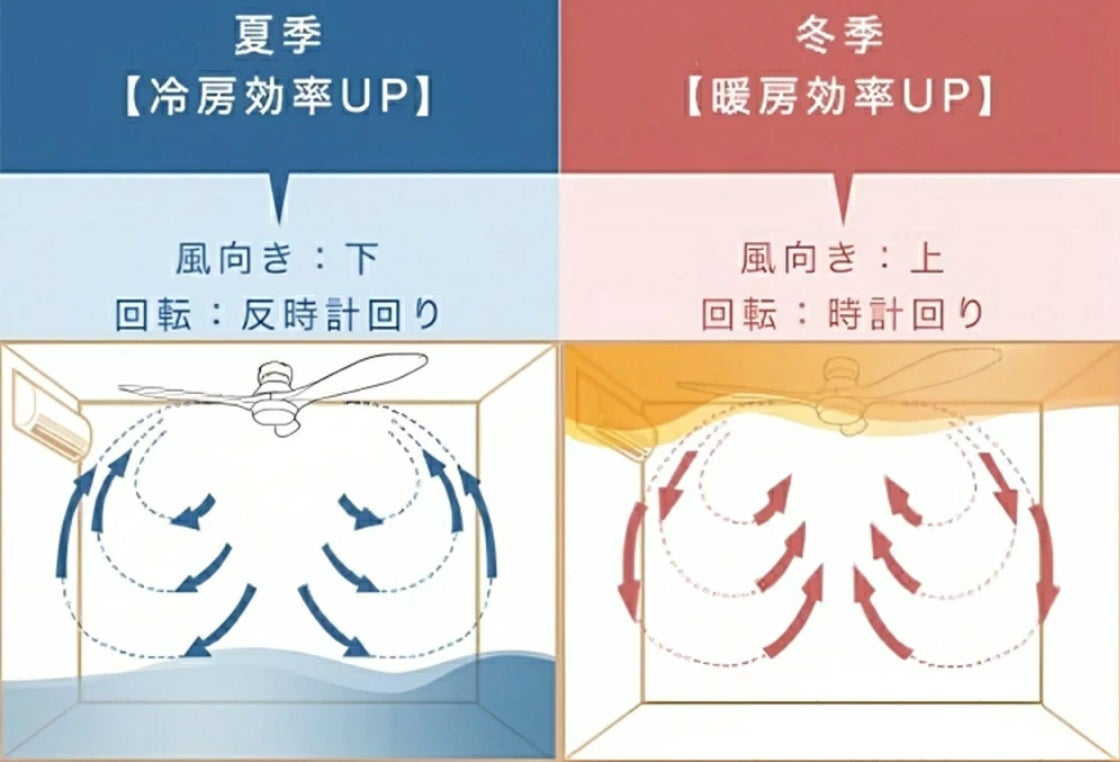 冷暖房を使用すると暖かい空気は上に、冷たい空気は下に溜まることがあります。ファンで空気を攪拌することで、空気を効果的に循環させ、部屋全体を均一な温度に保ちます。