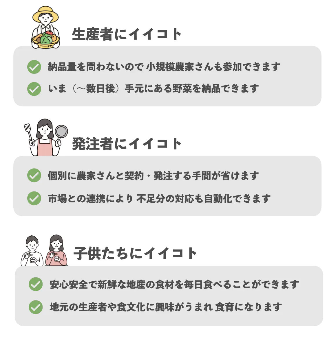 生産者、発注者、子供たち、それぞれにこんなイイコトがあるんです。