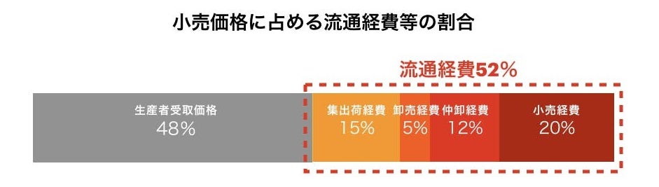 例えば、僕たちがスーパーで手にする野菜が100円だとすると、そのうちの半分以上が流通経費だって言われてる。
