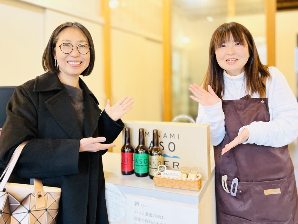 写真は、ASOビールをご提供くださっている南阿蘇ケアサービスの岩本さんとの1枚。