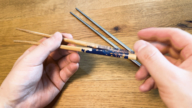 チタン製の箸『霞-kasumi-』は、これまでの壊れやすい箸の弱点を克服しています。