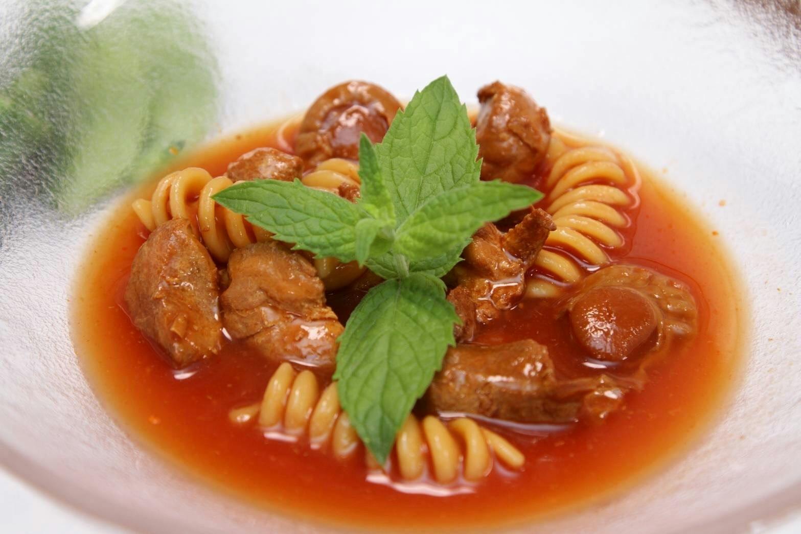●原材料:鶏肉(岩手県産)、スライスマッシュルーム(山形県産)、ホタテ(青森県産)パスタ(小麦を含む)/野菜スープ(国産玉ねぎ、キャベツ、人参)、ケチャップ、砂糖、純米酢、トマトピューレ、醤油(小麦・大豆を含む)、発酵調味料、塩麹