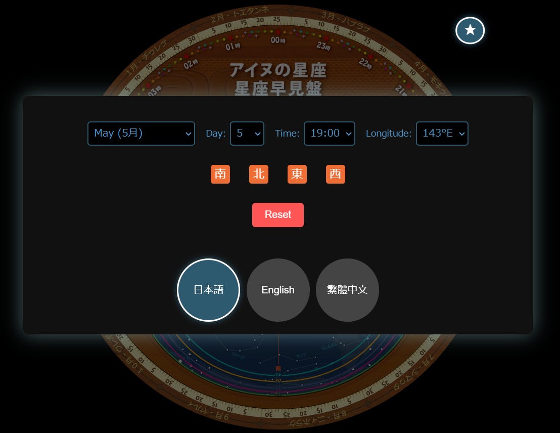 プログラミング言語を書いたり、占いも得意です。そして私が作ったアイヌ星座早見盤もデジタル化してしまいました☆☆☆(デジタル星座早見盤は、私のワークショップ時にモニターに出して説明する際に使用します)