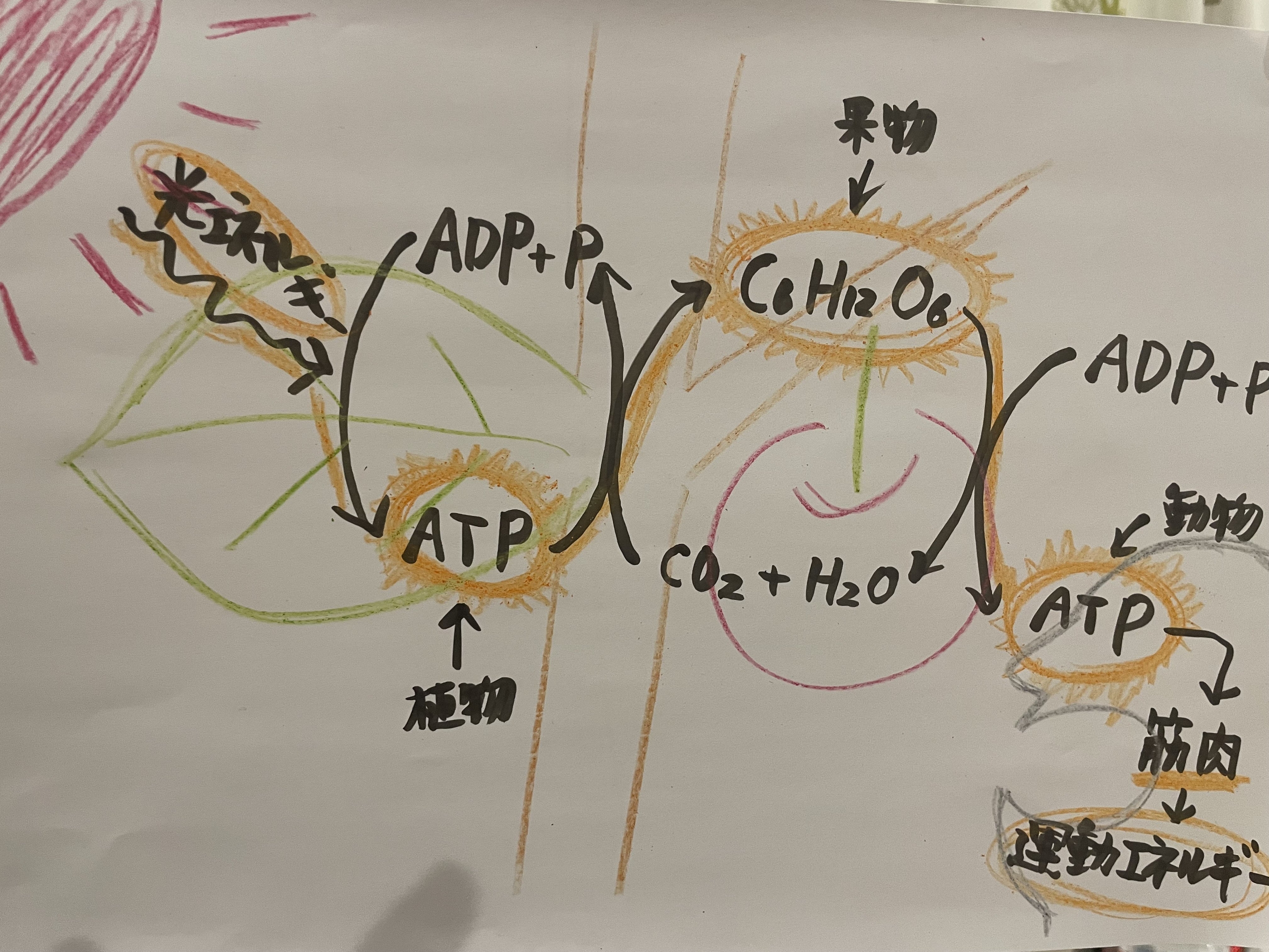 オレンジ色がエネルギーを表します。私たちの食事の元は全て光エネルギーってことです