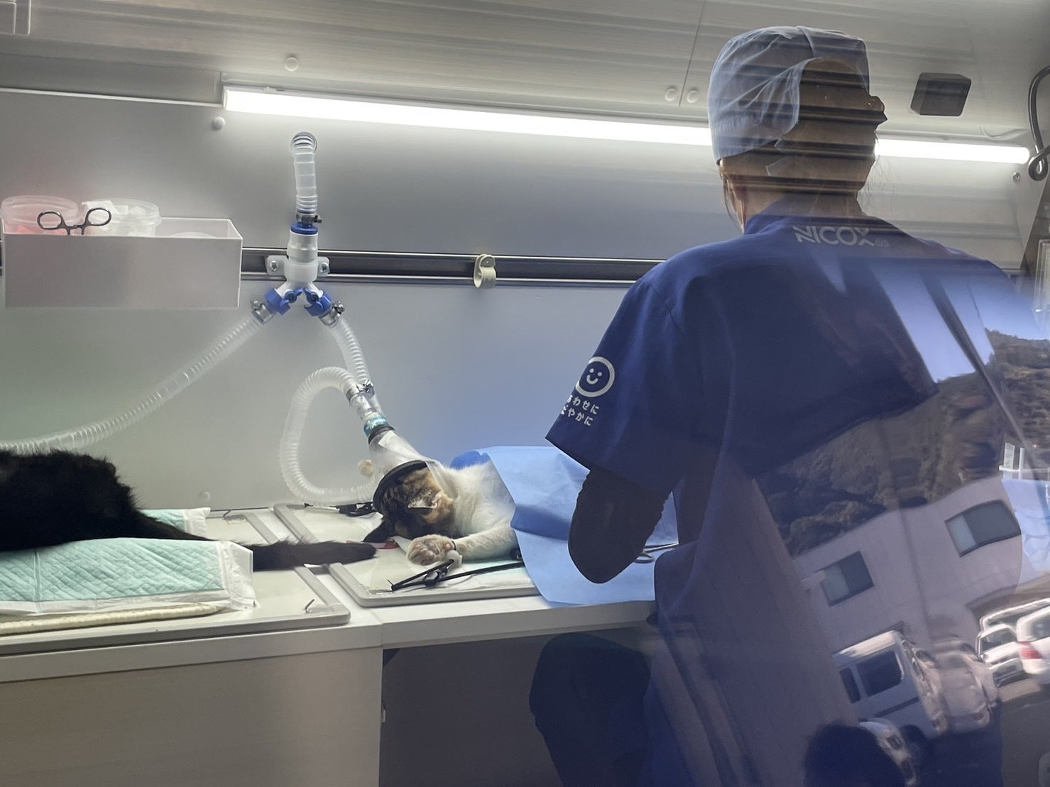 近隣に対応できる動物病院が無いため、昨年は高知県四万十市の不妊去勢手術専門病院から移動式手術車を招聘し、手術の様子も含め活動中の様子を地域住民に公開するなど、積極的に情報発信に努めたところ、次第に理解が広がってきました。