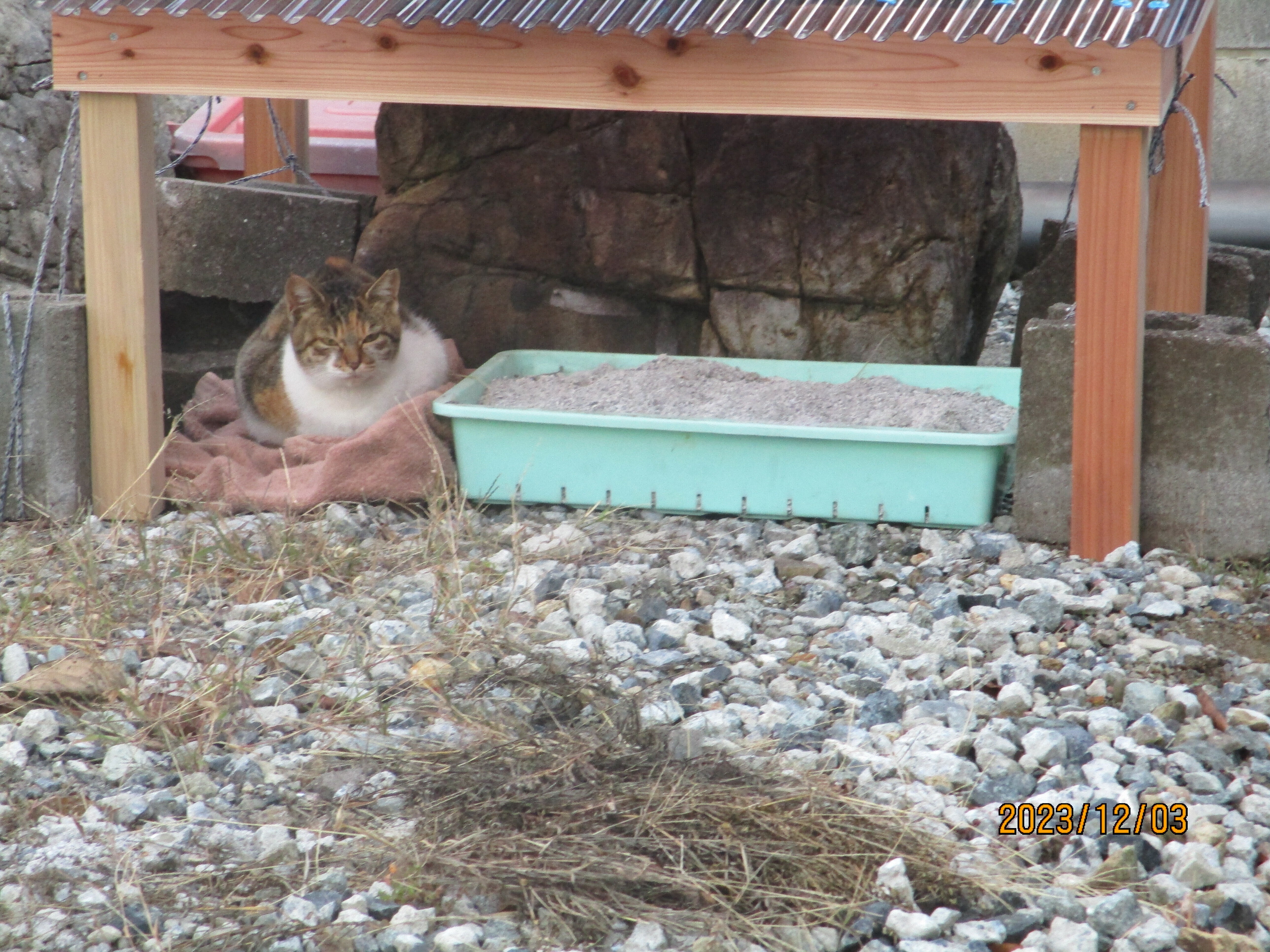 また、地域各所に餌やりや猫トイレを設置し、汚れたら掃除もしています