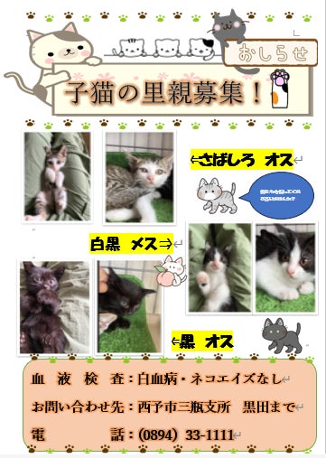 西予市役所の皆様にもご協力頂きながら、里親探しにも取り組んでいます。