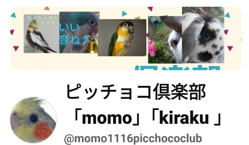 ピッチョコ倶楽部「momo&kiraku」です。愛鳥さんの世界が少しでも幸せになりますように、いつも応援させて頂いております。