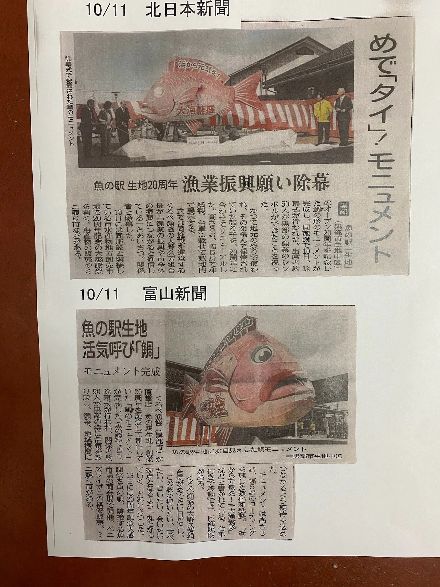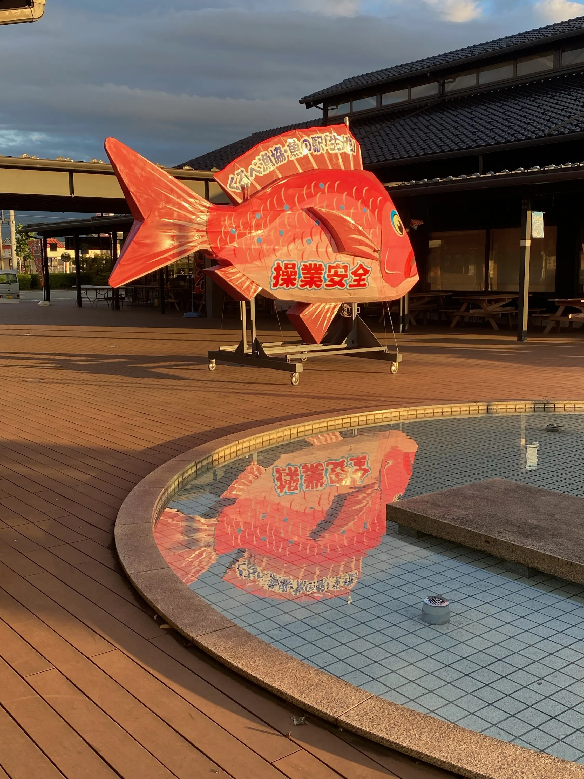 この魚の駅「生地」は約200種類もの魚が水揚げされる全国でも希少な場所です。地域資源としての「豊かな水産」を強みに今後も採れたて魚の情報発信、魚食の普及・拡大活動としてネット販売、「朝市」など催事イベントを継続的に開催して参ります。催事イベントには、魚の駅のデッキ広場に写真スポットとして、地域活性化の一助になるものとしてこの鯛のモニュメントを運用していきます。