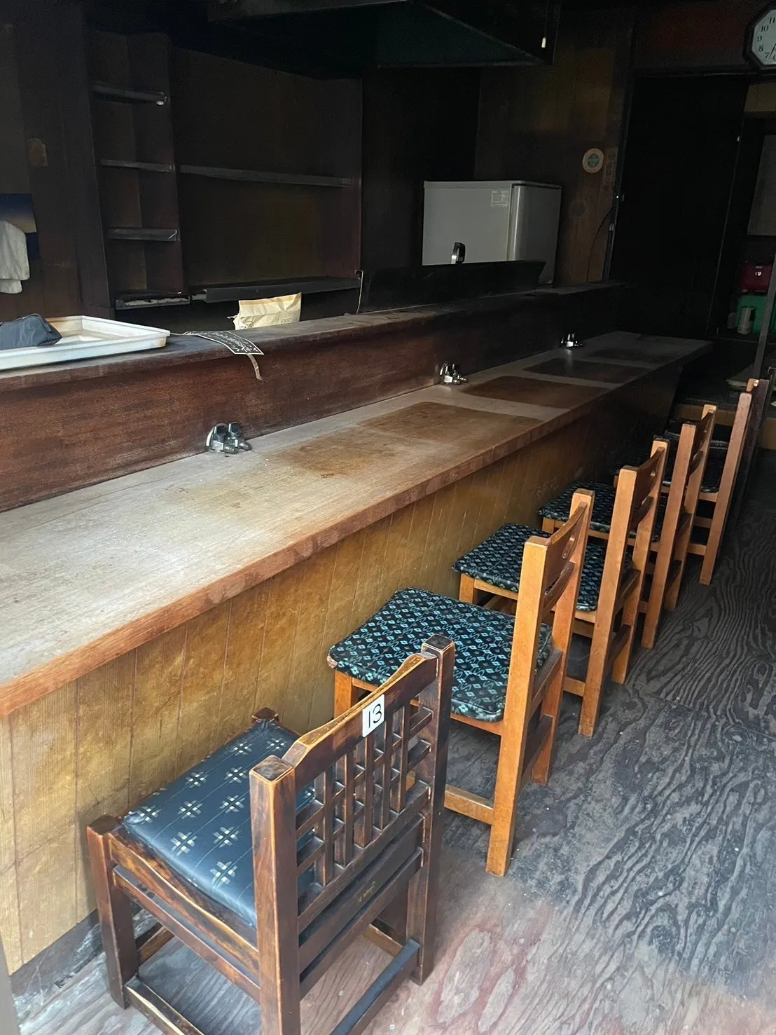 しかし初めて内覧にお邪魔した時は、あまりのレトロさに「古っ!」と大きな声で言ってしまいました。(笑)20年以上使われていない状態ということで、玄関には穴の空いたガラス扉、昭和情緒の残るカウンターと椅子、ボットントイレ、何もかもが現代と違う空間で驚きました。しかしこの物件をオシャレ昭和レトロにリノベーションすればとても面白いものが出来上がるのではないかと思いワクワクしたので、この場所で「お結び屋」の開業を決めました。