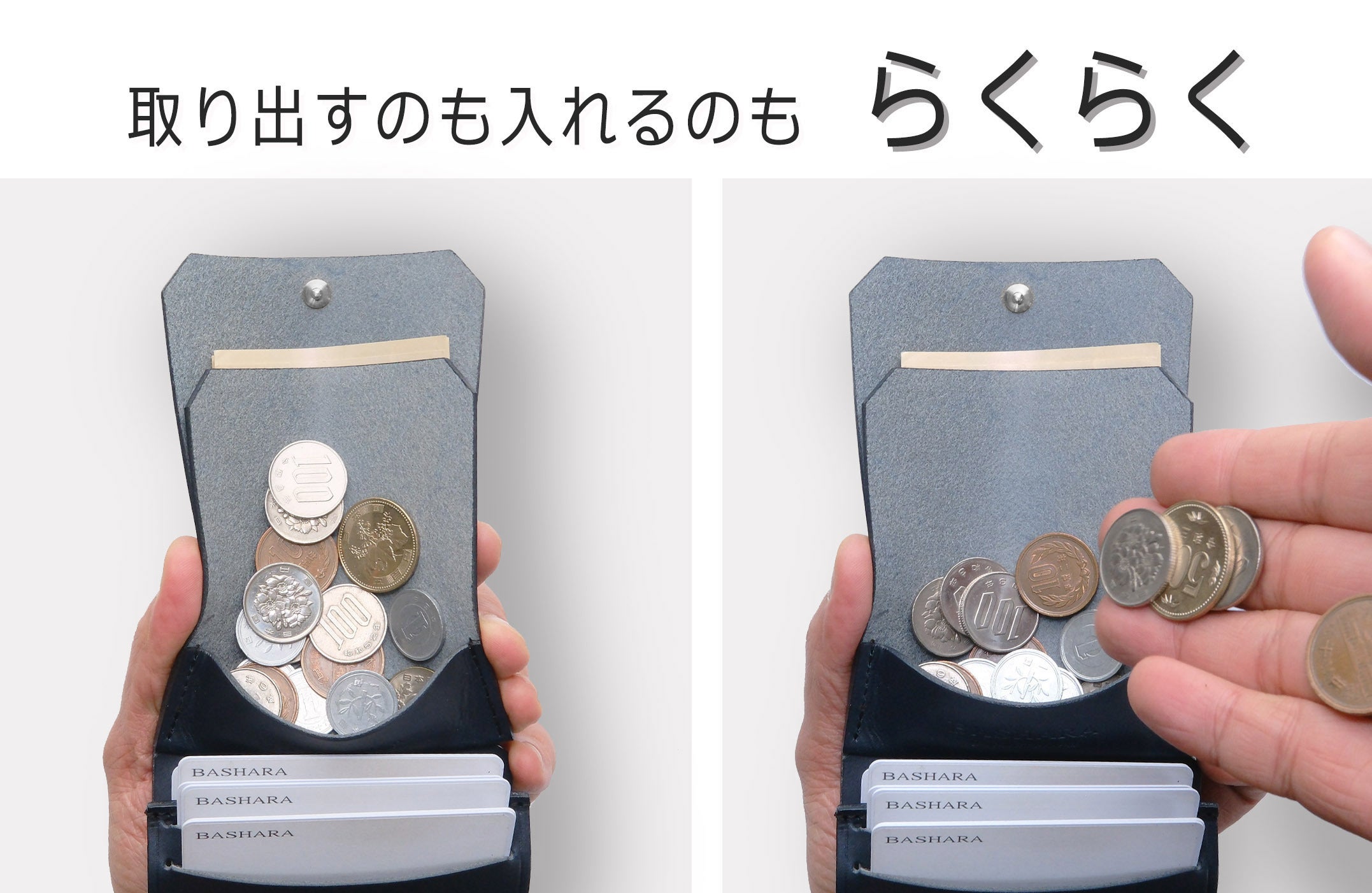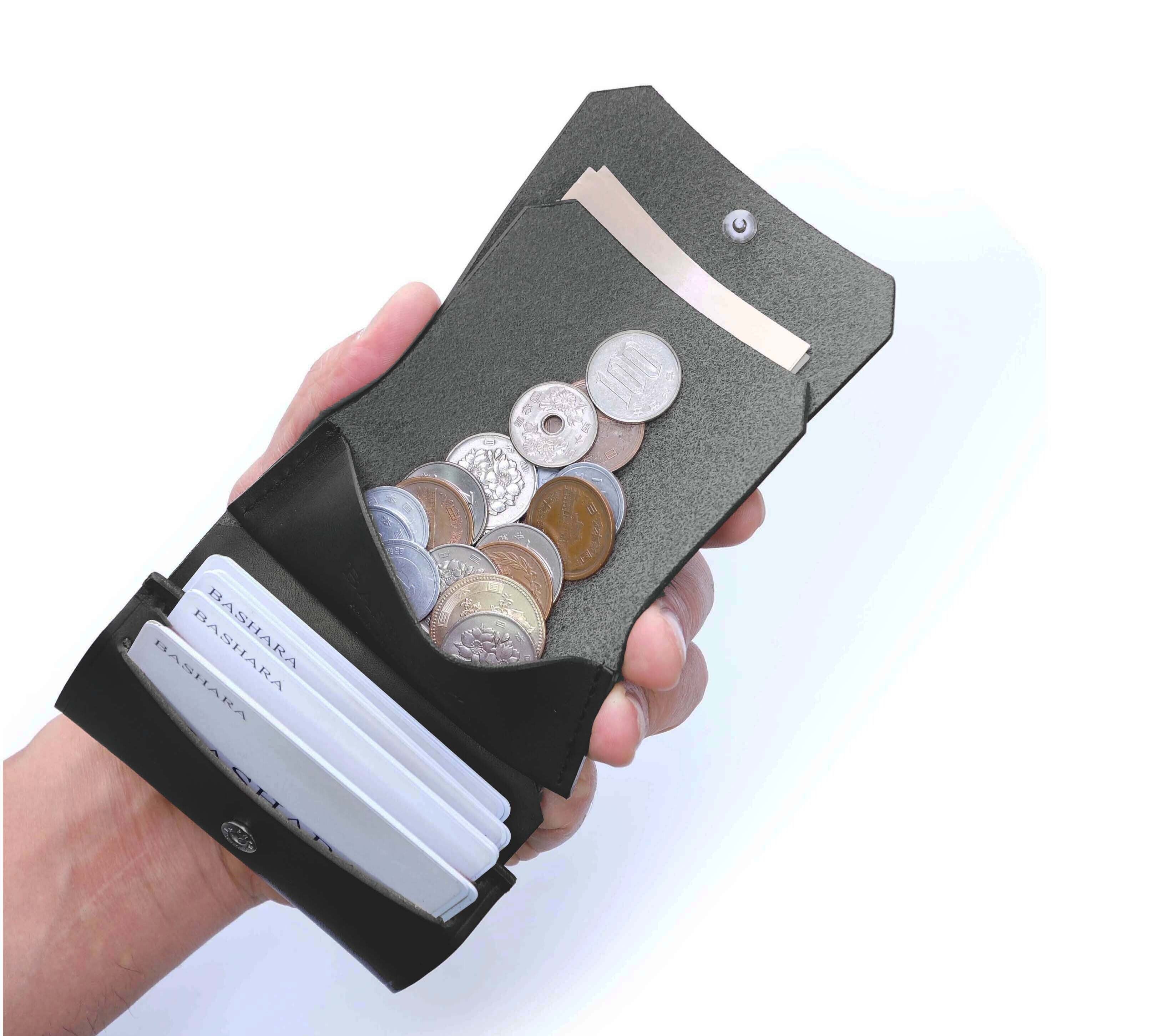 「小銭がどれくらいあるか」「どのカードを使うか」、開くだけで一目でわかる。