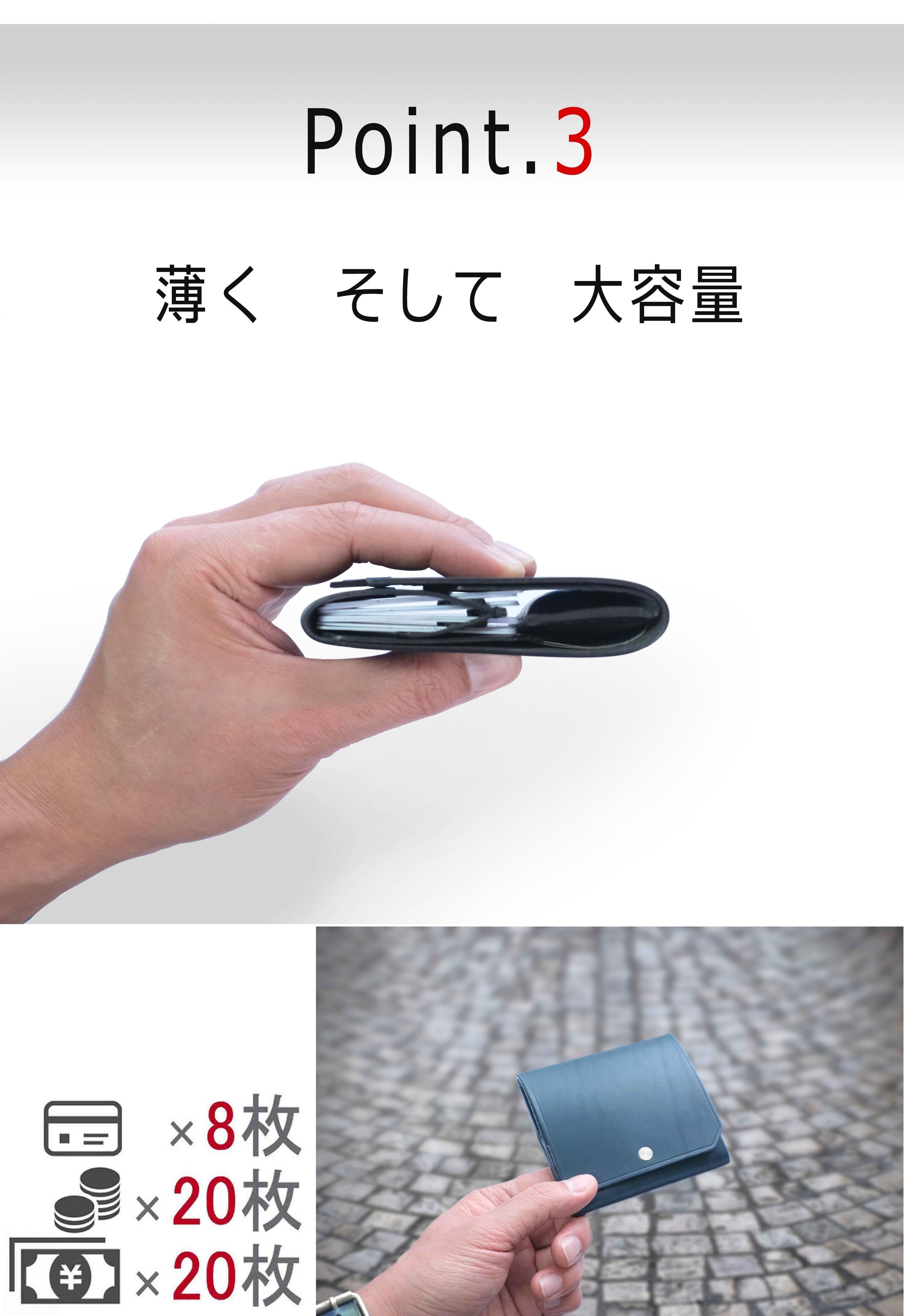 推奨最大容量 :カード8枚・コイン20枚・紙幣20枚