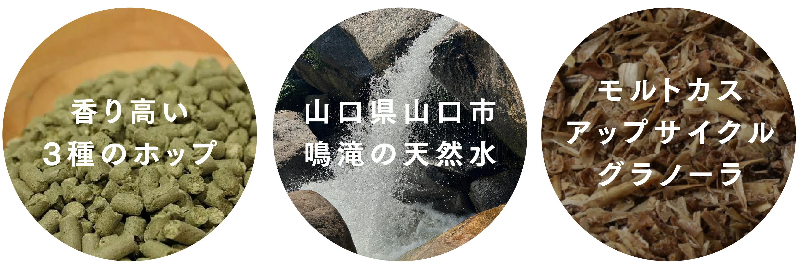ビールの質に大きく影響する水は、山口鳴滝の湧き水を使用。日本の天然水を使用しているからこその飲みやすさにつながっています。