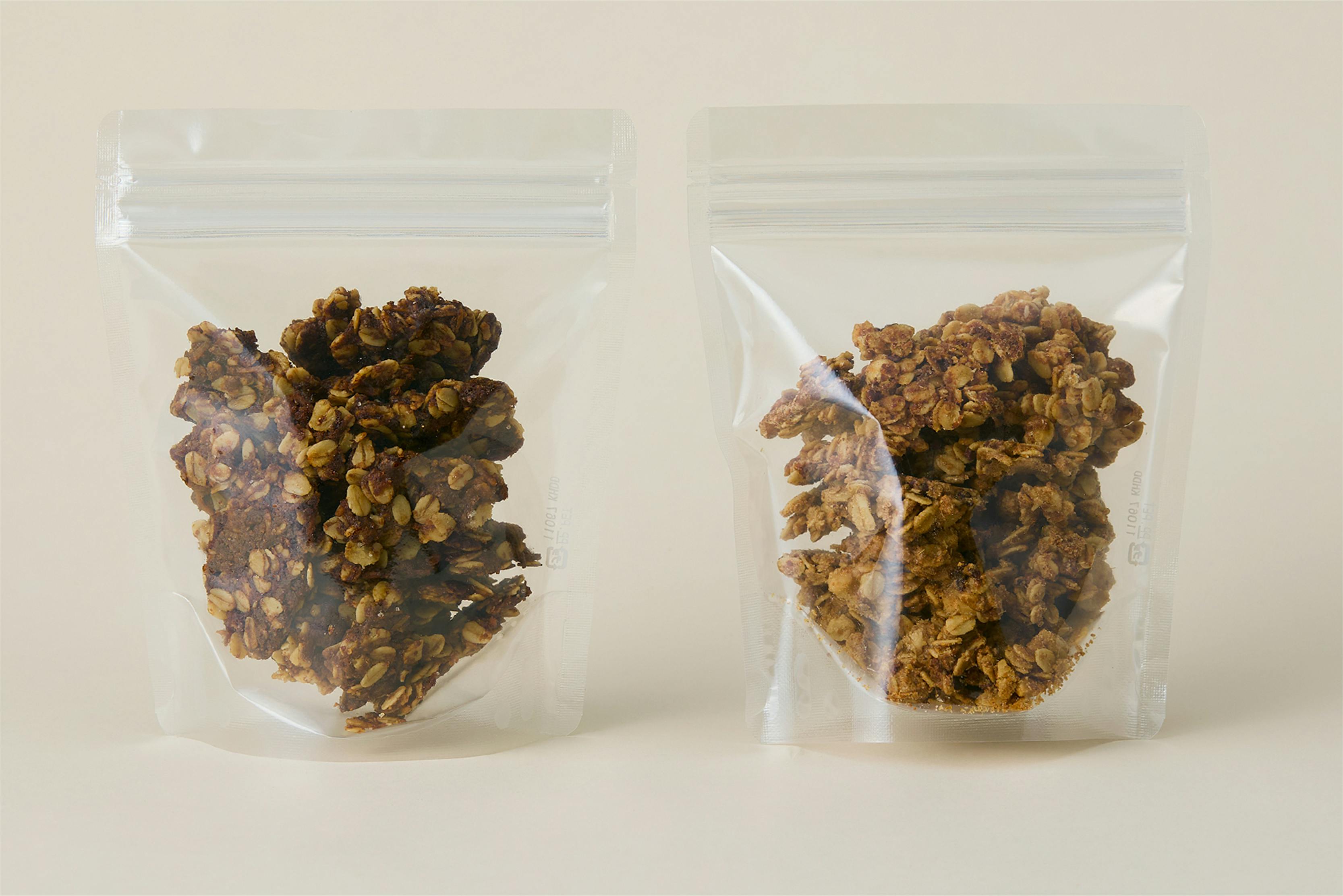BREWTOのモルトカスを使用したグラノーラ、エスニックテイスト(120g)とカカオニブ&オレンジ(120g)のセットです。小袋のモルトカスもおつけします。
