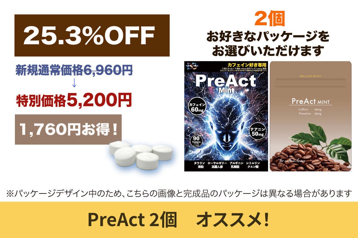 ●カフェインサプリ「PreAct(プレアクト)」2個をお届けします。