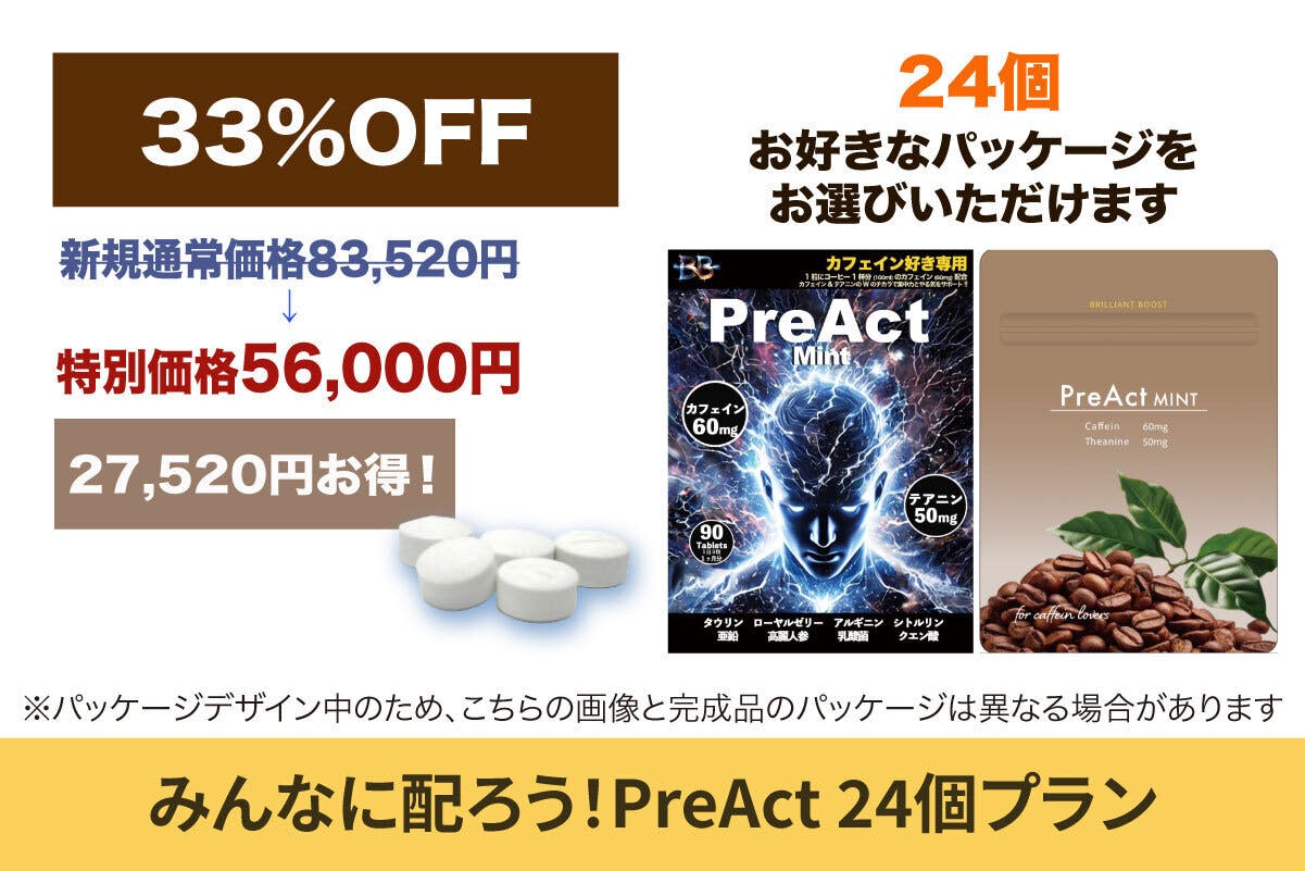 ●カフェインサプリ「PreAct(プレアクト)」24個をお届けします。