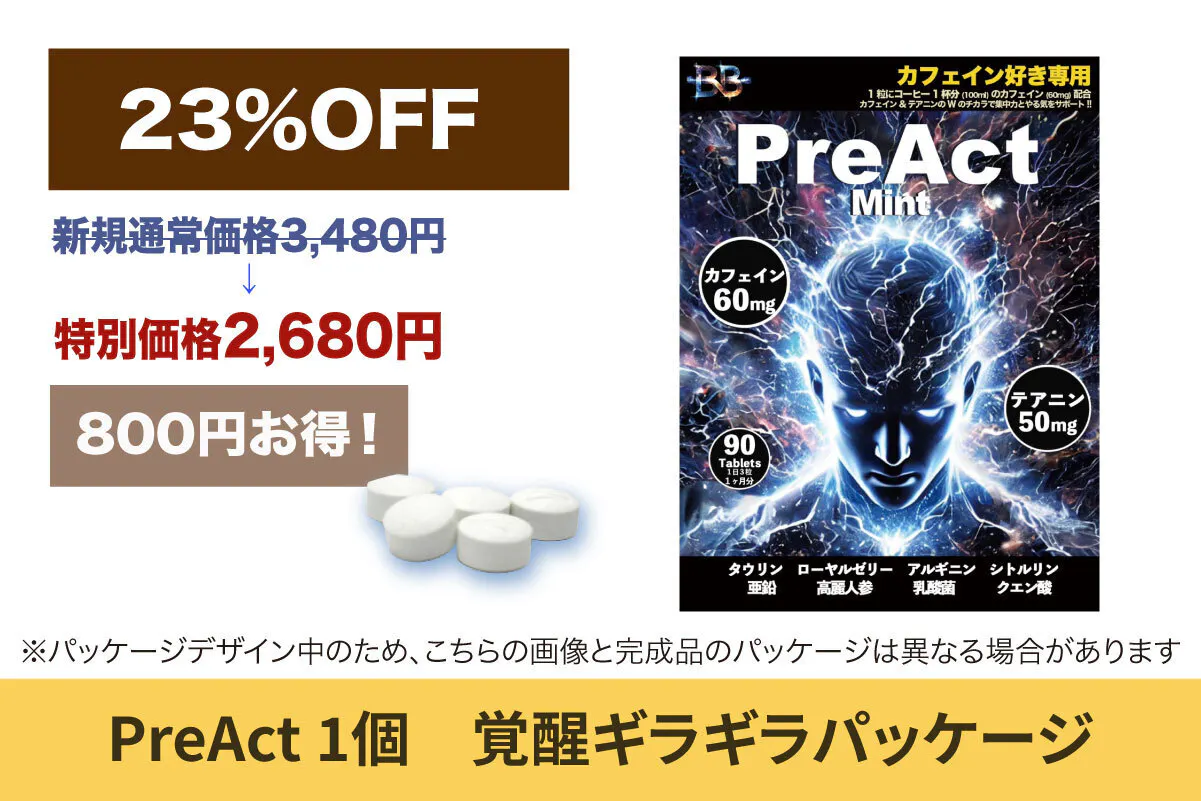 カフェインサプリ【PreAct ミント味】!