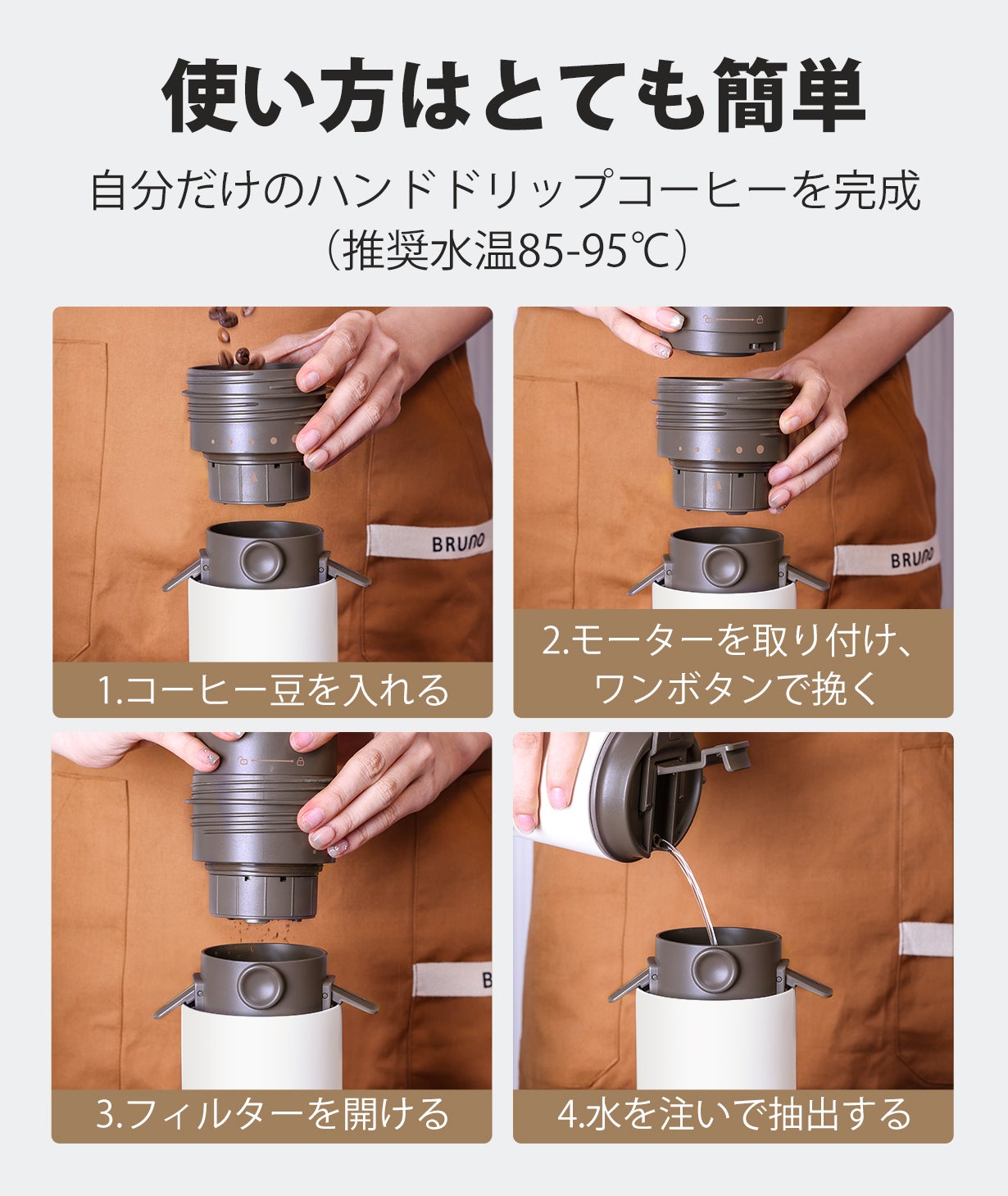 朝、香り豊かなコーヒーで一日を元気にスタートさせたい時も、フィットネス前に一杯飲んで気分を高めたい時も、このコーヒーメーカーはあなたの最適のパートナーです。