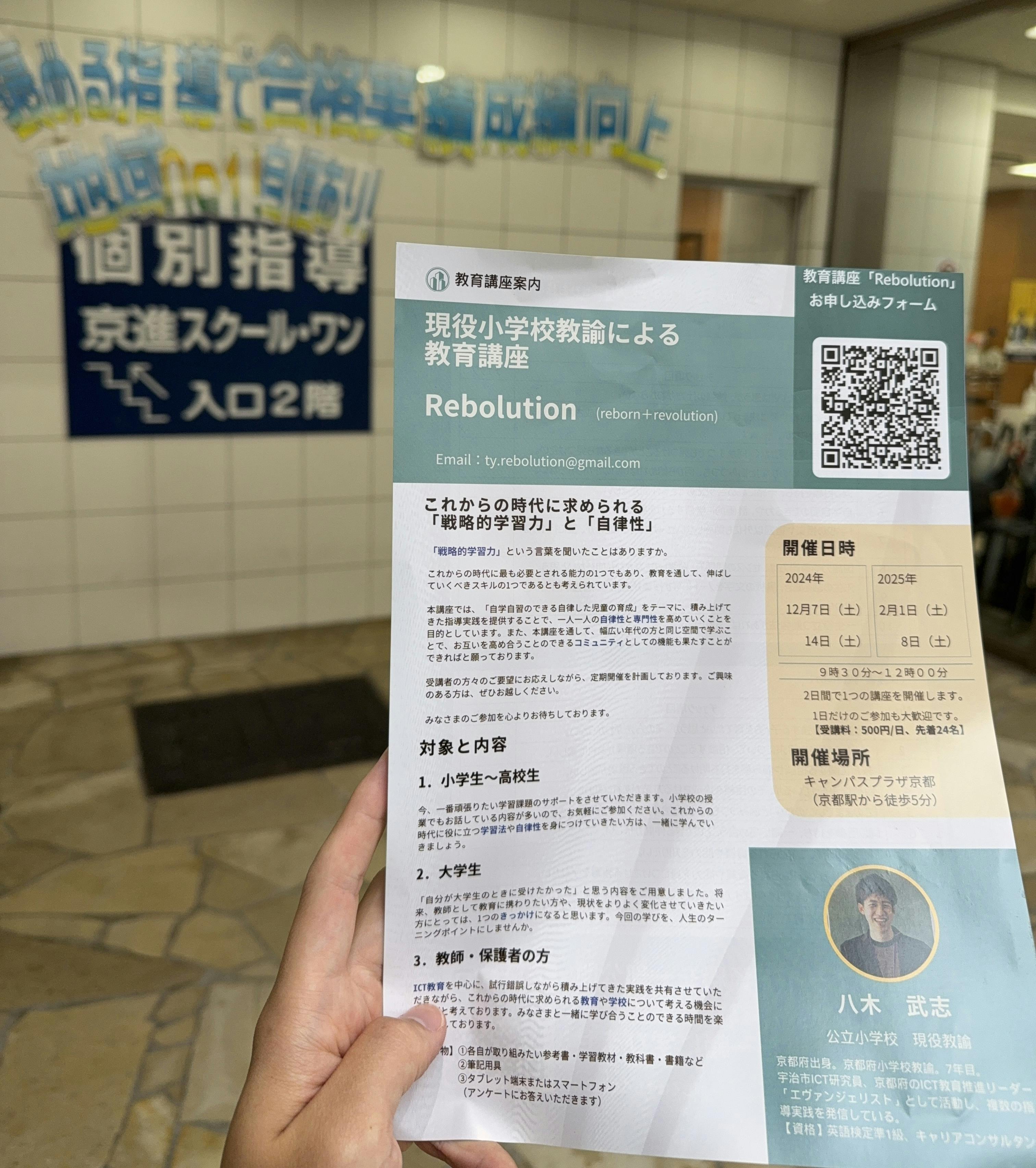 株式会社京進スクール・ワン京都駅前教室様のご協力により、フライヤーを配付していただくことになりました。
