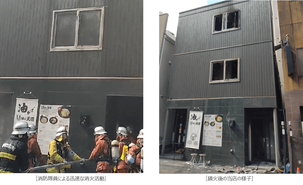 地元の消防の方々や近隣の皆さまのお力添えにより、6時間を超える消火活動の末、火は消し止められましたが、「味の天徳 静岡常磐町店」は火災により全焼しました。