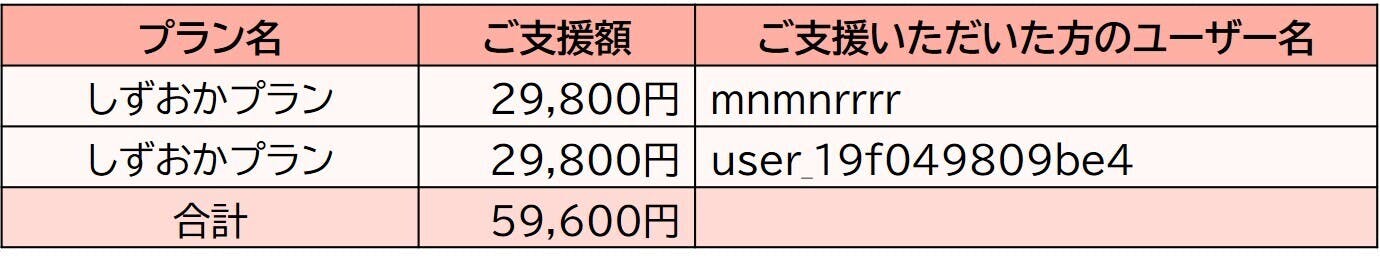 ご支援いただいたmnmnrrrr様、user_19f049809be4様、誠にありがとうございます。