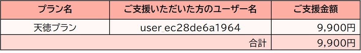 user_ec28de6a1964様をはじめ、これまでの皆さまのご支援により、