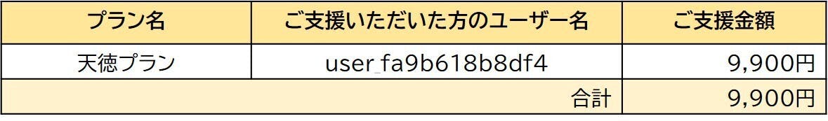 しかし、昨日user_fa9b618b8df4様より、天徳プランのご支援をいただきました。