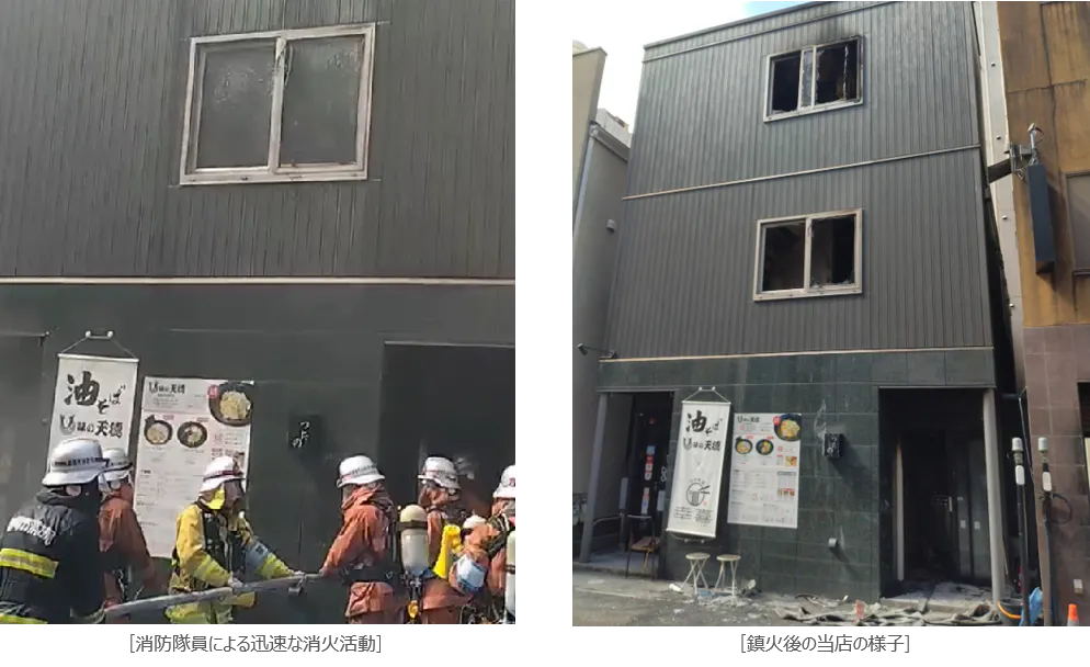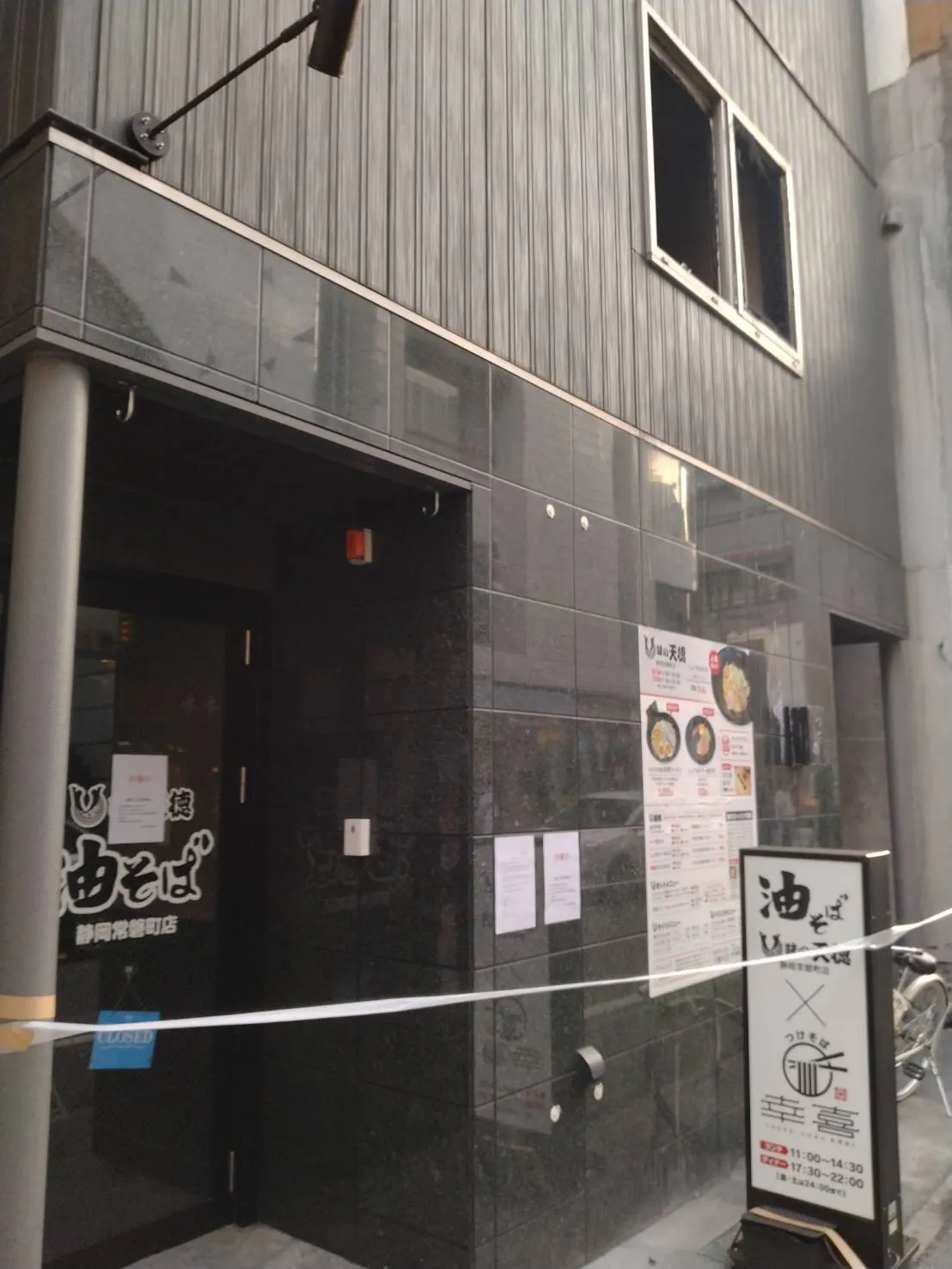地元の消防の方々や近隣の皆さまのお力添えにより、6時間を超える消火活動の末、火は消し止められましたが、「味の天徳 静岡常磐町店」は火災により全焼しました。