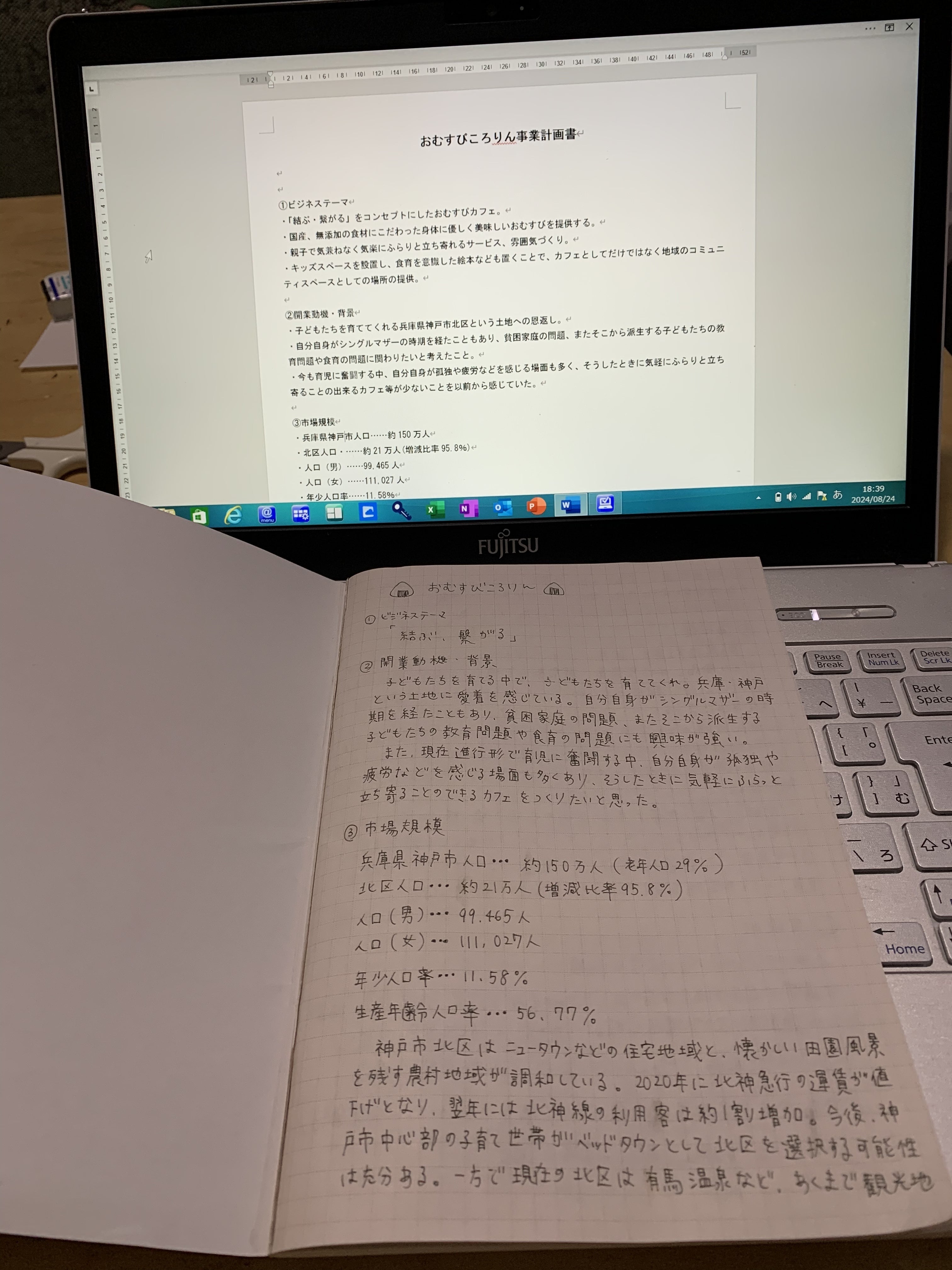 手書きの事業計画書の草案を元に、パソコンを使い、修正を加えましたヽ(´▽`)/