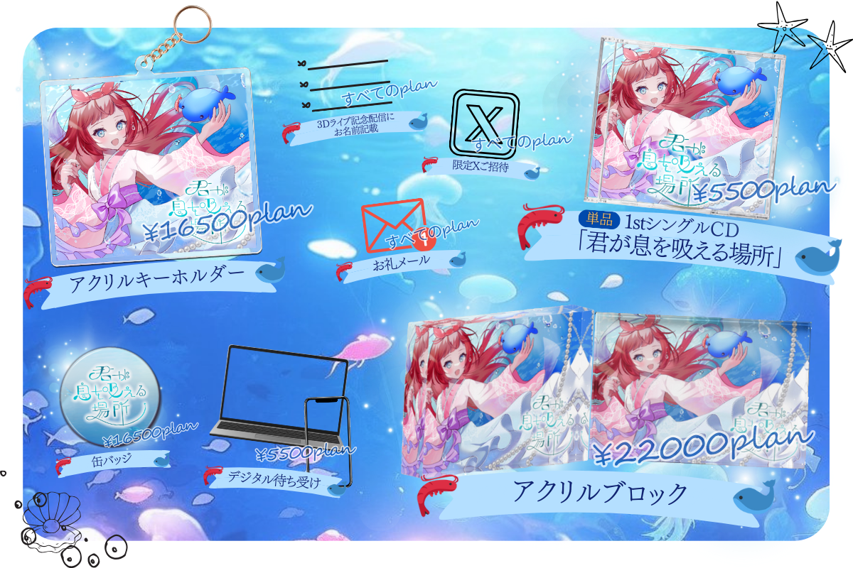 本プロジェクトの返礼品には1stシングルジャケットのキービジュアルをたくさん使っています!!