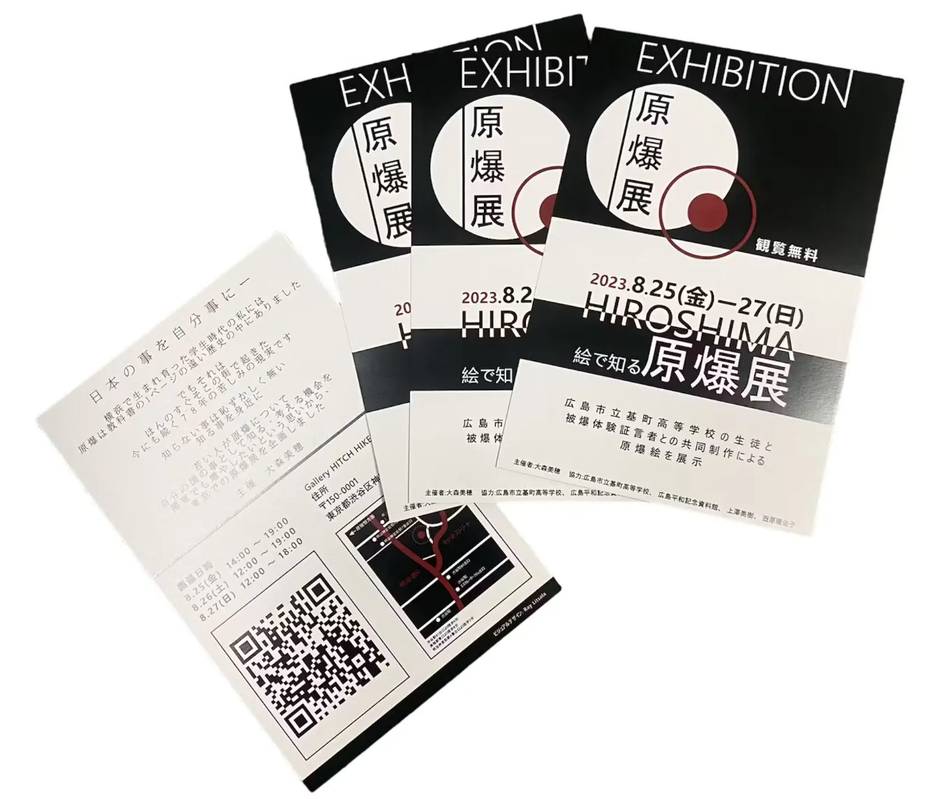 原始的なやり方ではありますが、なかなかSNSのみでは繋がることのできない方も多いため、東京にある広島や長崎の関連施設や渋谷区のギャラリー付近のお店などに今年もフライヤーを置かせていただきたいと思っています。