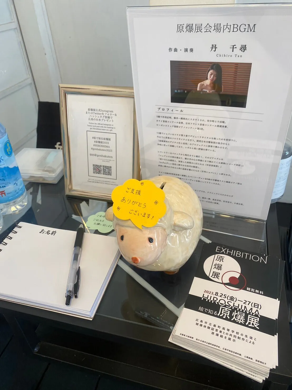 既存の曲ではなく、「平和への祈り」をテーマに第一回原爆展の際にピアニスト・作曲家である丹千尋さんに作曲と録音していただいたプレイリストを展示会場内で流します。