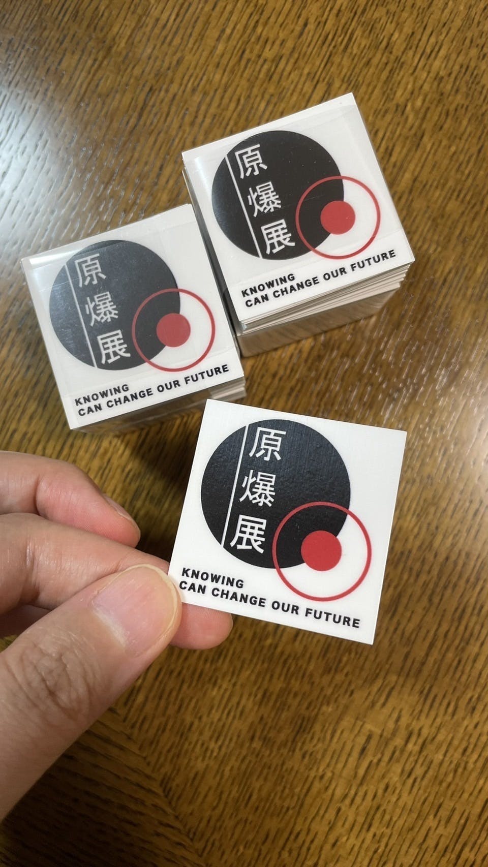 2025/09/19 18:57みなさま、いかがお過ごしでしょうか?東京はまだまだ暑い日が続きそうで、涼しい秋が恋しくなります。さて、今年の原爆展まであと2ヶ月をきりました!準備も着々と進んでおります。今日は、メンバーのミキから「注文していたステッカーが手元に届いた」という連絡をもらったので、皆様にも共有させていただきます!サイズは4×4cmと小さめですが、スマートフォンケースに入れても主張が強すぎないサイズにしました。原爆展当日にギャラリー内で販売予定で、利益は全て、原爆展の活動への寄付という形にさせていただきたいと思っております。▼ステッカー1枚単品:200円(税込)▼原爆展冊子+ステッカー1枚のセット: 600円(税込)(原爆展冊子1冊500円(税込))ぜひギャラリーで実際手に取ってご覧ください。そしてリターンについて改めてお知らせなのですが、発送時期は【2025年11月】になります。原爆展の開催時期が3〜4月の春予定だったことから、リターン発送時期も同時期に設定しておりましたが、開催自体が11月の秋開催に変更になったため、発送もその時期に行ないます。原爆展を3日間開催したのち、その期間の感想や様子も感謝のメールでお送りします。活動報告書、原爆展冊子のリターンについても11/9の最終日以降の発送になります。どうぞ当日の展示、そしてリターンも楽しみにしていてください。また進捗をお知らせします!素敵な週末をお過ごしください。 もっと見る【原爆展ステッカーデザインの投票のお願い】