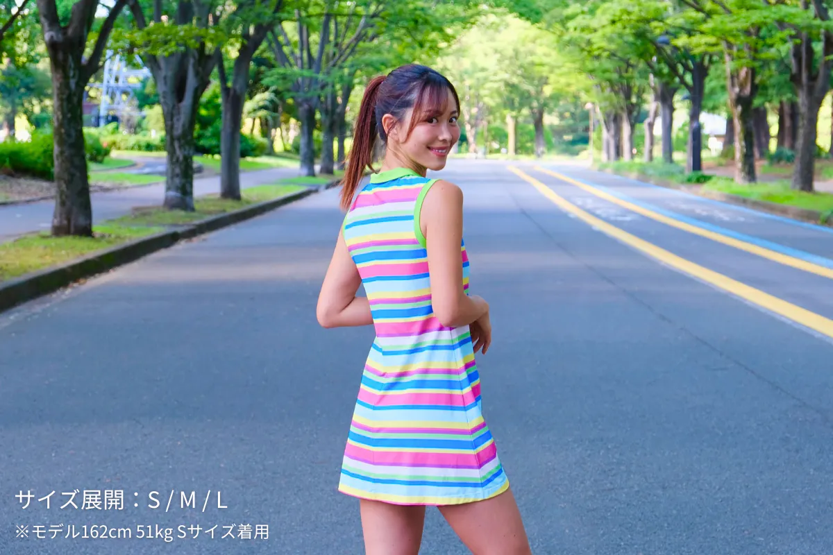 元気の出るカラフルボーダーカラーのワンピースで、着るだけで気分が上がること間違いなし!