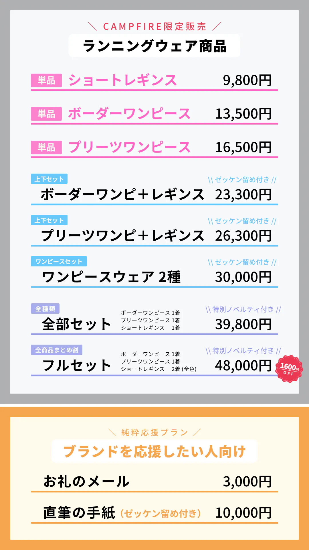 そして、第一弾商品の『ワンピースウェア』と『ショートレギンス』をクラウドファンディングで受注販売します!