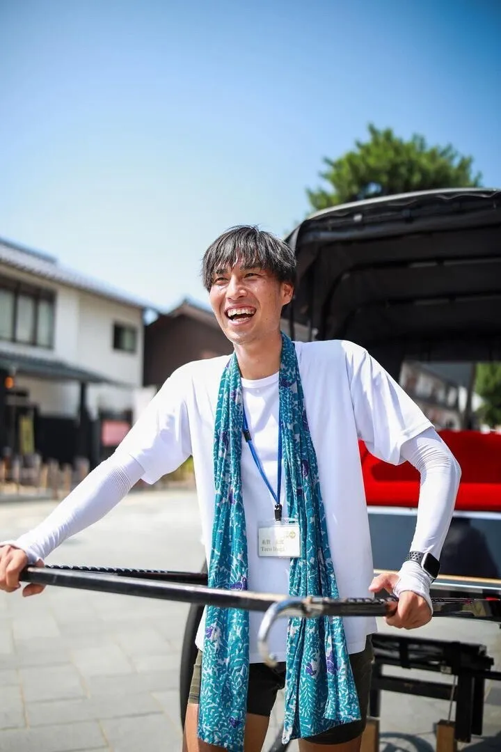 学生時代、学校の徒歩圏内に清水寺があったことから、人力車は私にとって身近な存在で、自然と興味を持つようになりました。興味本位で始めたアルバイトでしたが、人力車の独特な乗り心地、力強く人力車を押す男らしい背中、そして京都の美しい風景が一体となったその瞬間、「めちゃくちゃかっこいい!」と胸が熱くなったことを今でも鮮明に覚えています。