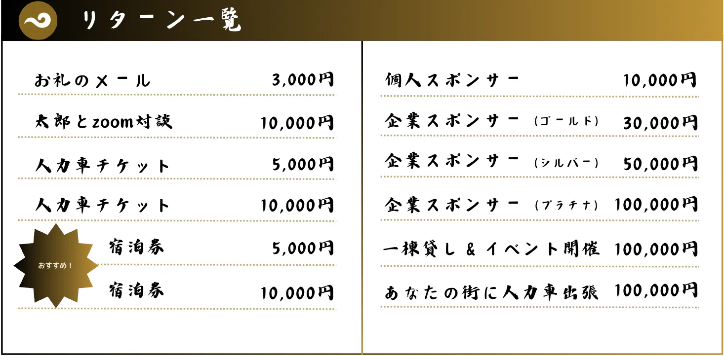 私は京都で10年間人力車の修行をし、オーストラリアでのワーホリや社会人学生を経て、地元の出雲大社にUターンし人力車で起業してから2年経ちます。これまで人力車を通して、多くのお客様に恵まれて、「もう1歩出雲と繋がれる」きっかけを作って地元を盛り上げたい!と思い、1日1組限定のゲストハウスを立ち上げるべくクラウドファンディングに挑戦します!応援よろしくお願いします!