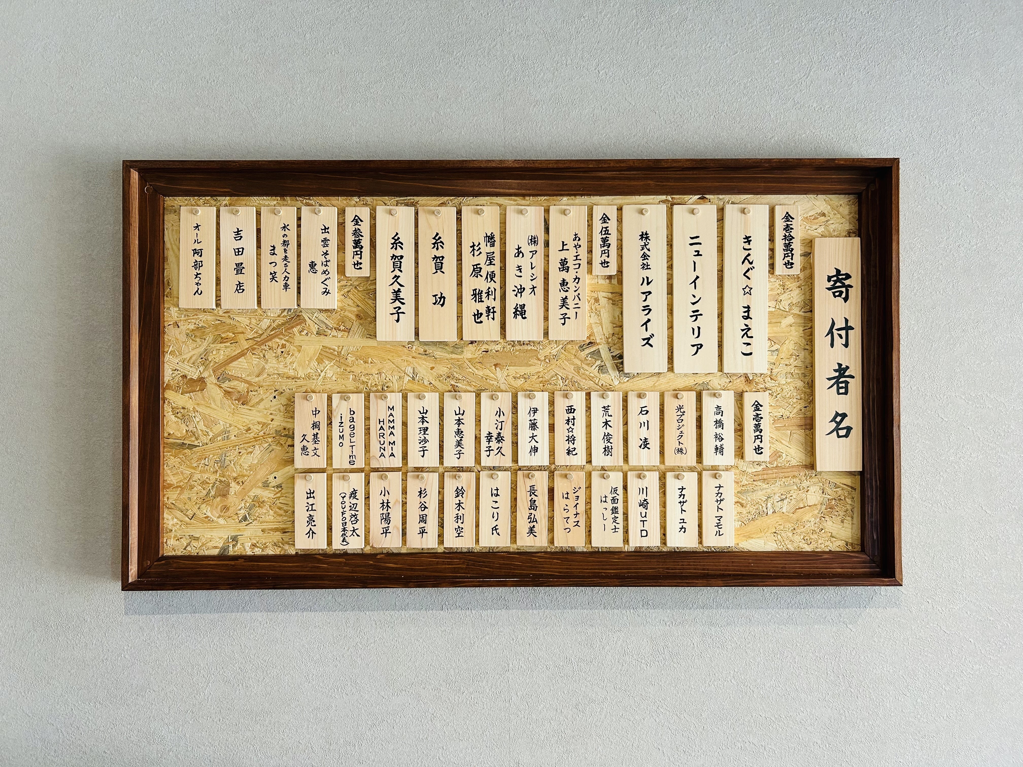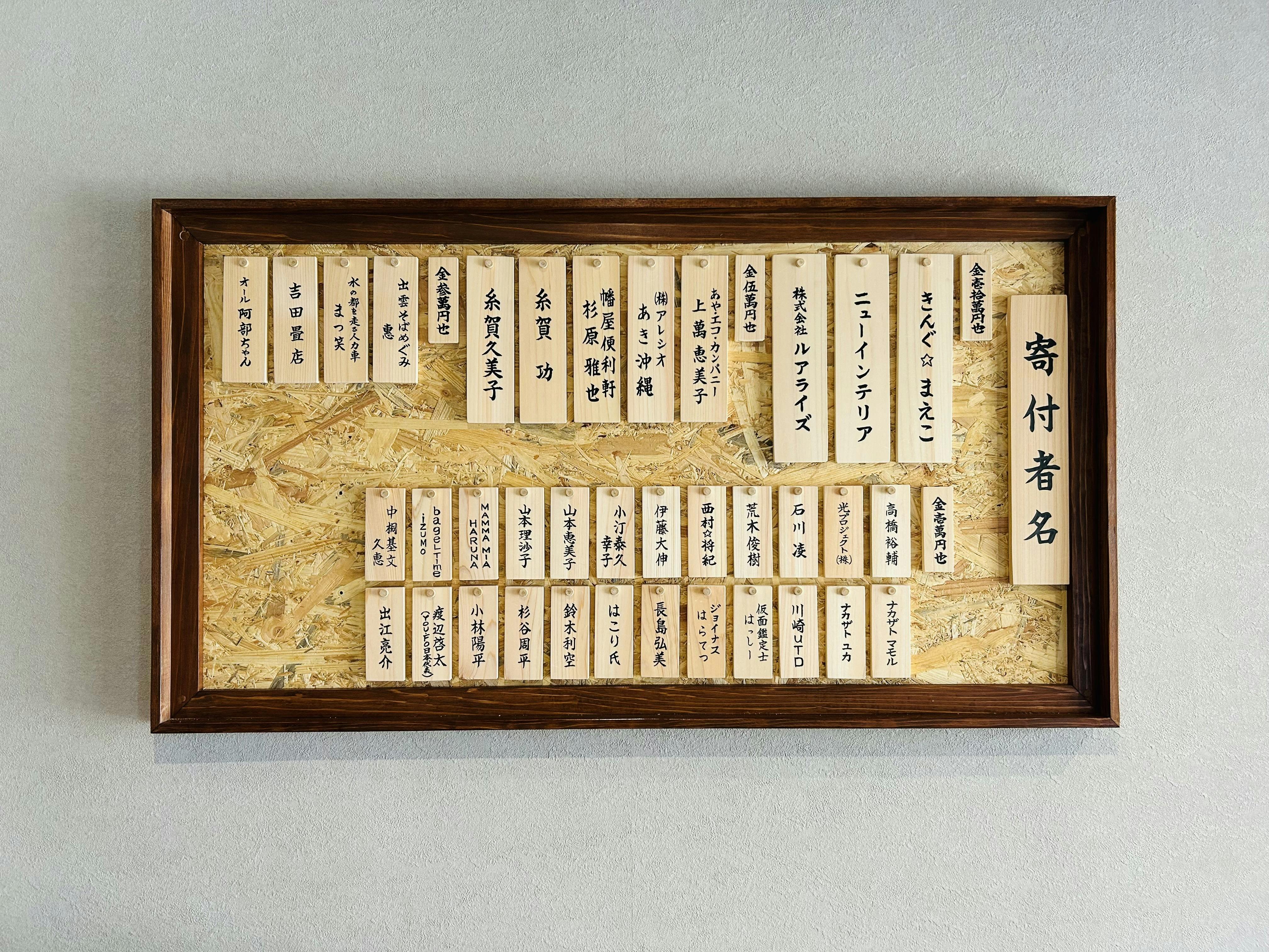 2025/06/18 10:24ご支援いただいた皆さまへいつもあたたかい応援を、本当にありがとうございます。このたび、クラウドファンディングでご支援いただいた皆さまのお名前を掲示する「寄付者一覧ボード」が、ついに完成いたしましたのでご報告させていただきます。このボードには、ご希望いただいた36名の支援者の方々のお名前を掲載させていただいています。札の文字は、出雲市在住YouTuberの小汀 泰久(おばま やすひさ)さんにご協力いただき、一枚一枚、心を込めて書いていただきました。小汀さんのYouTubeチャンネルはこちら↓↓↓↓↓https://youtube.com/channel/UC0TsXUJ74BXy97PuhyF6rqQ?si=2pde3YRqTCK5wi3zそしてボードは、出雲市多伎町の『どんぐり倶楽部 ギャラリー童夢』に作成設置していただきました。お近くにお越しの際は、ぜひお立ち寄りいただき、皆さまのご支援が形になったこのボードをご覧いただけましたら幸いです。皆さまの応援のおかげで、こうして一歩一歩、地域の新たな挑戦を進めることができています。これからも出雲の魅力を伝える活動を大切に育ててまいりますので、引き続きどうぞよろしくお願いいたします。 もっと見る
