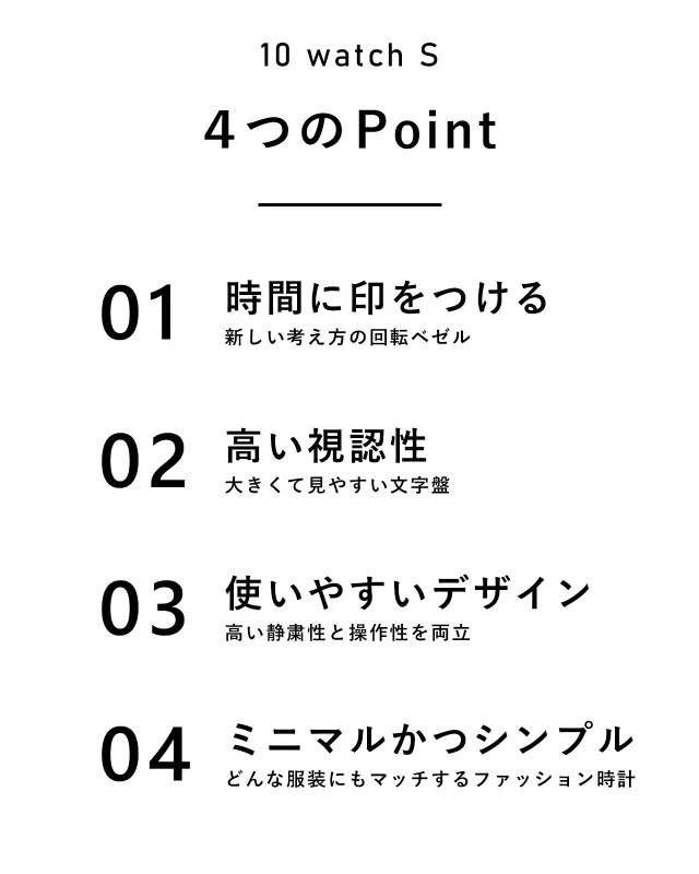 【10 watch S】は機能性だけでなくファッションウォッチを意識して開発した腕時計のため、受験後もそのまま使っていただけるデザインとなっております。