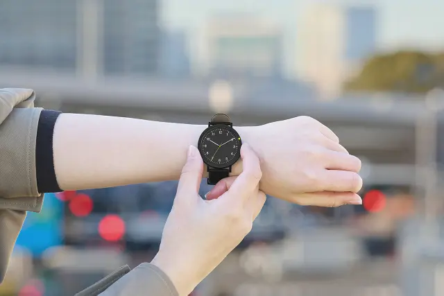 シンプルで見やすい印が施されたベゼル。予定の時間やタスクの残り時間など、誰でも感覚的に時間の目印として設定することができます。