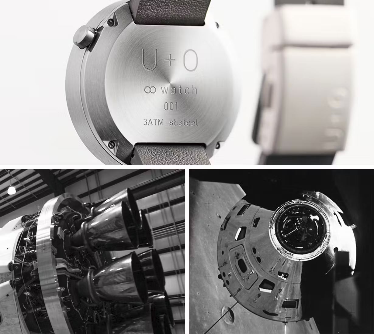 極限まで装飾を削ぎ落とし、ソリッドな質感で仕上げた【oo watch】はまさに宇宙船を彷彿とさせます。