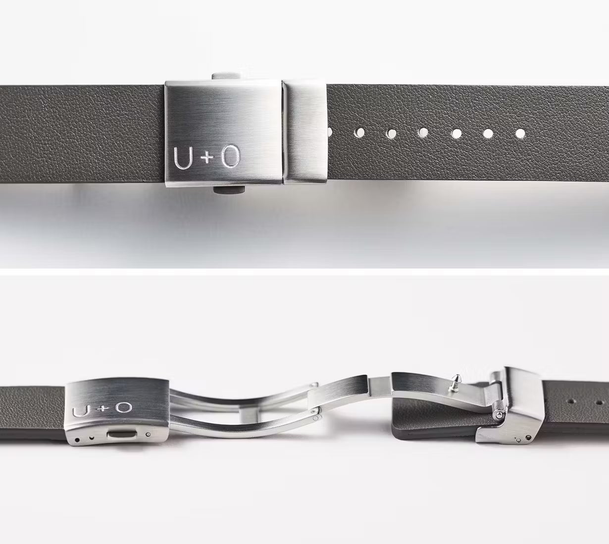 バックルのU+Oのブランド文字も従来品とは異なる位置に刻印しました。