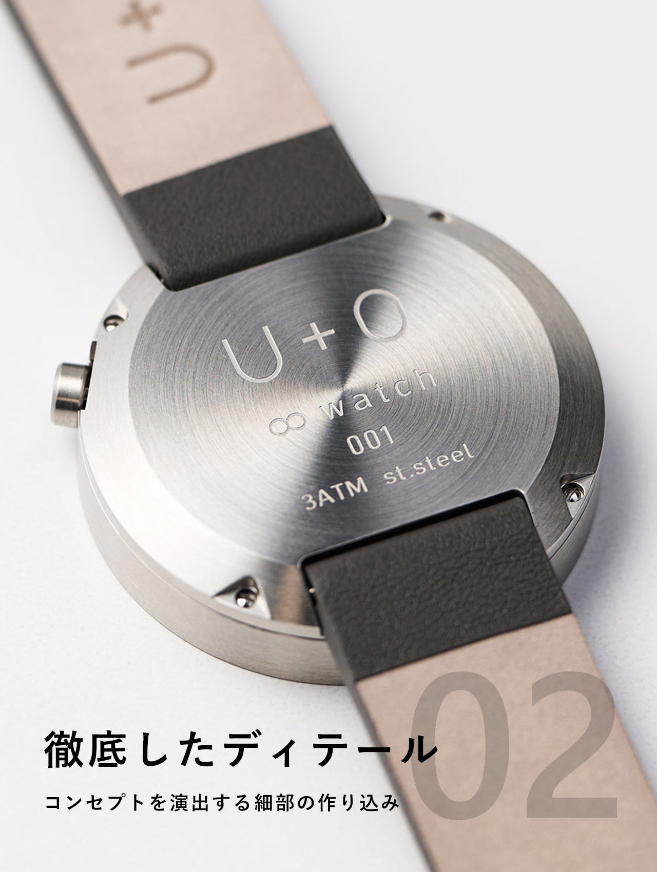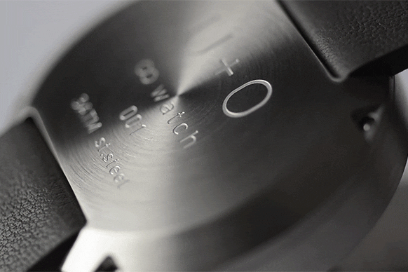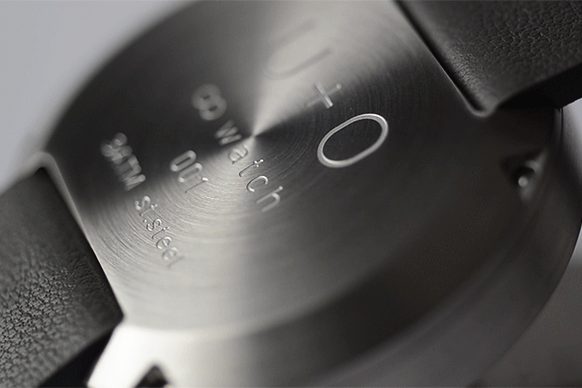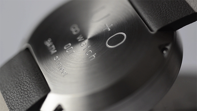 装飾を削ぎ落とした【oo watch】には、通常の腕時計にある時分針や文字盤の数字などはありません。