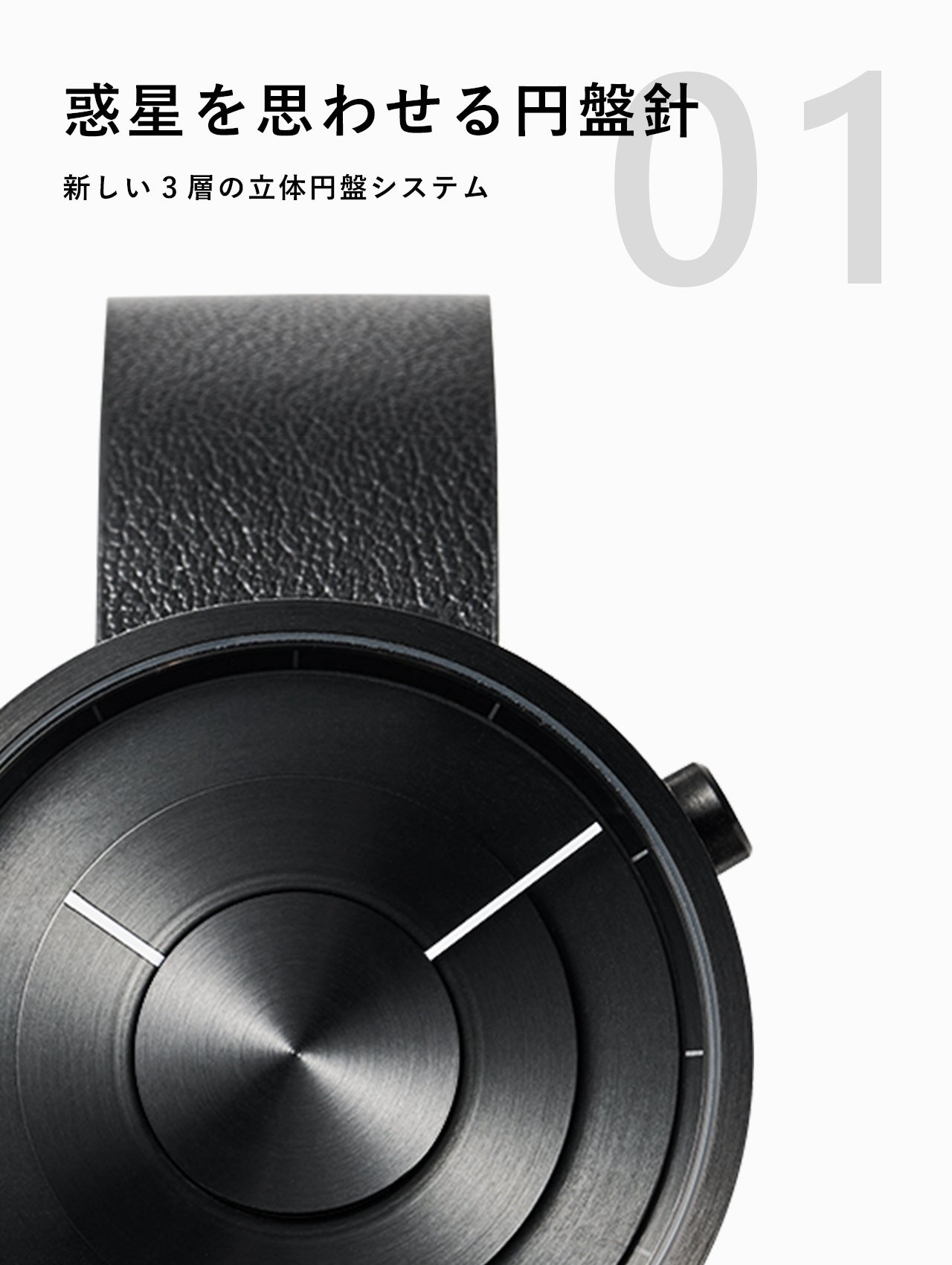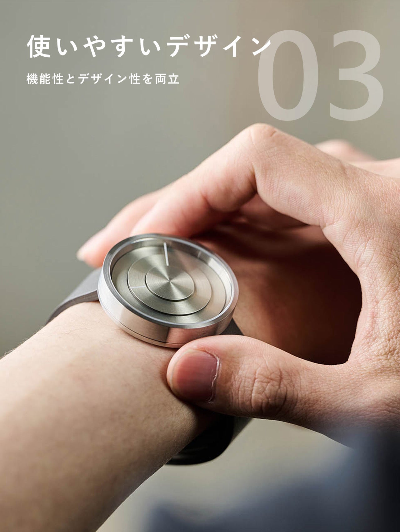 特徴的な円盤システムの腕時計でありながら、一般的な時計と同じ読み方ができる利便性を確保しました。